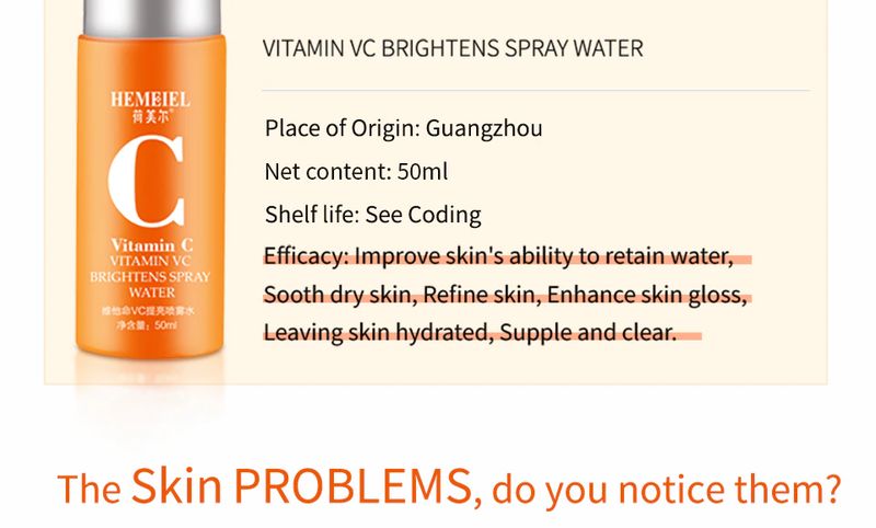 Hemeiel 100% pure vitamina c toner clareador facial spray hidratante facial serum encolhimento poros controle de óleo clareamento cuidados com a pele