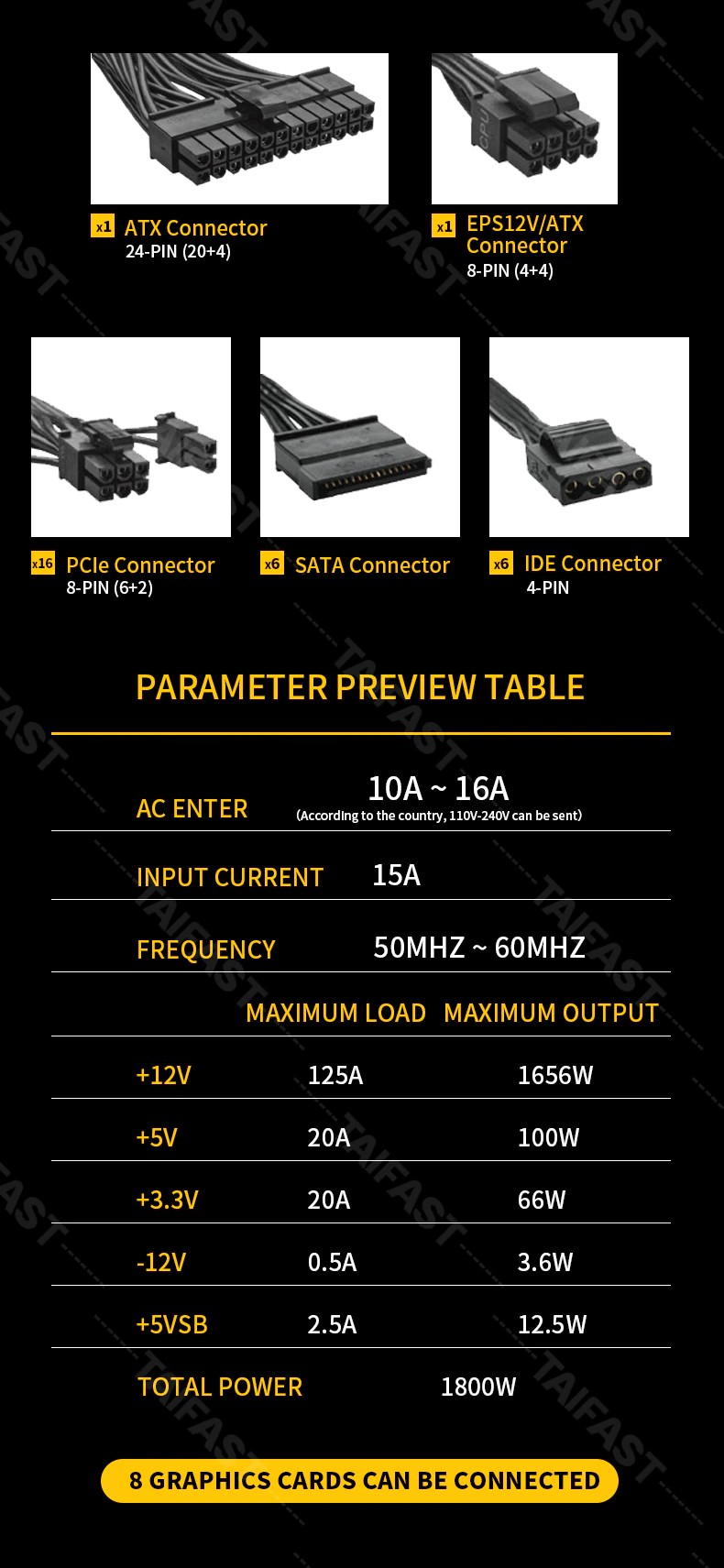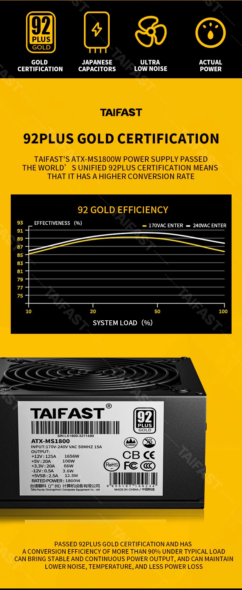 Taisu Alta Eficiência Atx 1800W Pico Psu 92 Mais Fonte De Alimentação