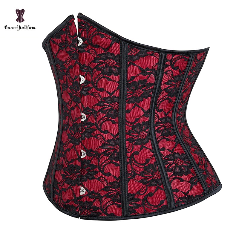 Alta Qualidade Metal Busk Clipes Atacado Underbust Cintura Espartilho Emagrecimento Cintura Cinchers Lacing Bondage Espartilhos De Cetim 28335 #