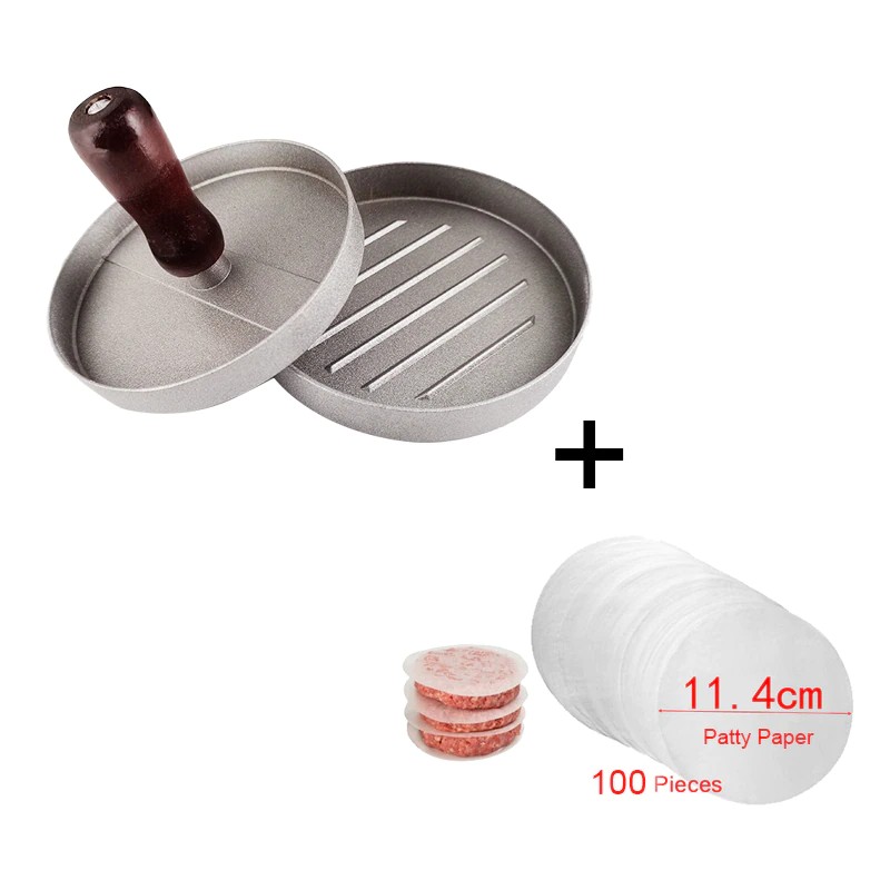 Pacote valioso de prensa de hambúrguer e forros de papel petrolífero.