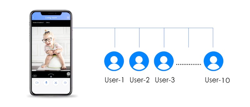 Introduzindo o seu membro da família das ICSee número da conta e enviar o link de compartilhamento para eles para convidá-los para ver vídeos remotamente, a câmera de segurança permite que até 10 telefones móveis para se conectar ao mesmo tempo através de Wi-fi (2.4GHz).