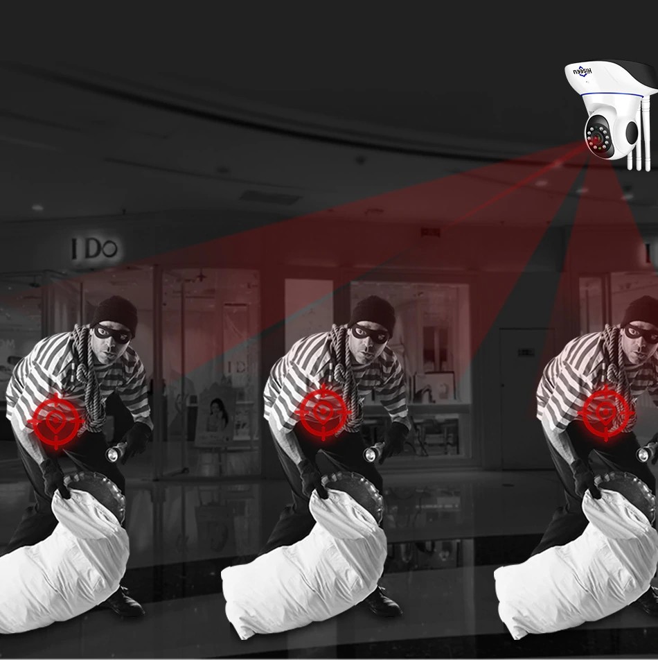 Quando as atividades anormais é detectado, a câmera de segurança vai zumbindo e enviado em tempo-real alerta de movimento para seu aplicativo de telefone, e-mail e registro no cartão sd.