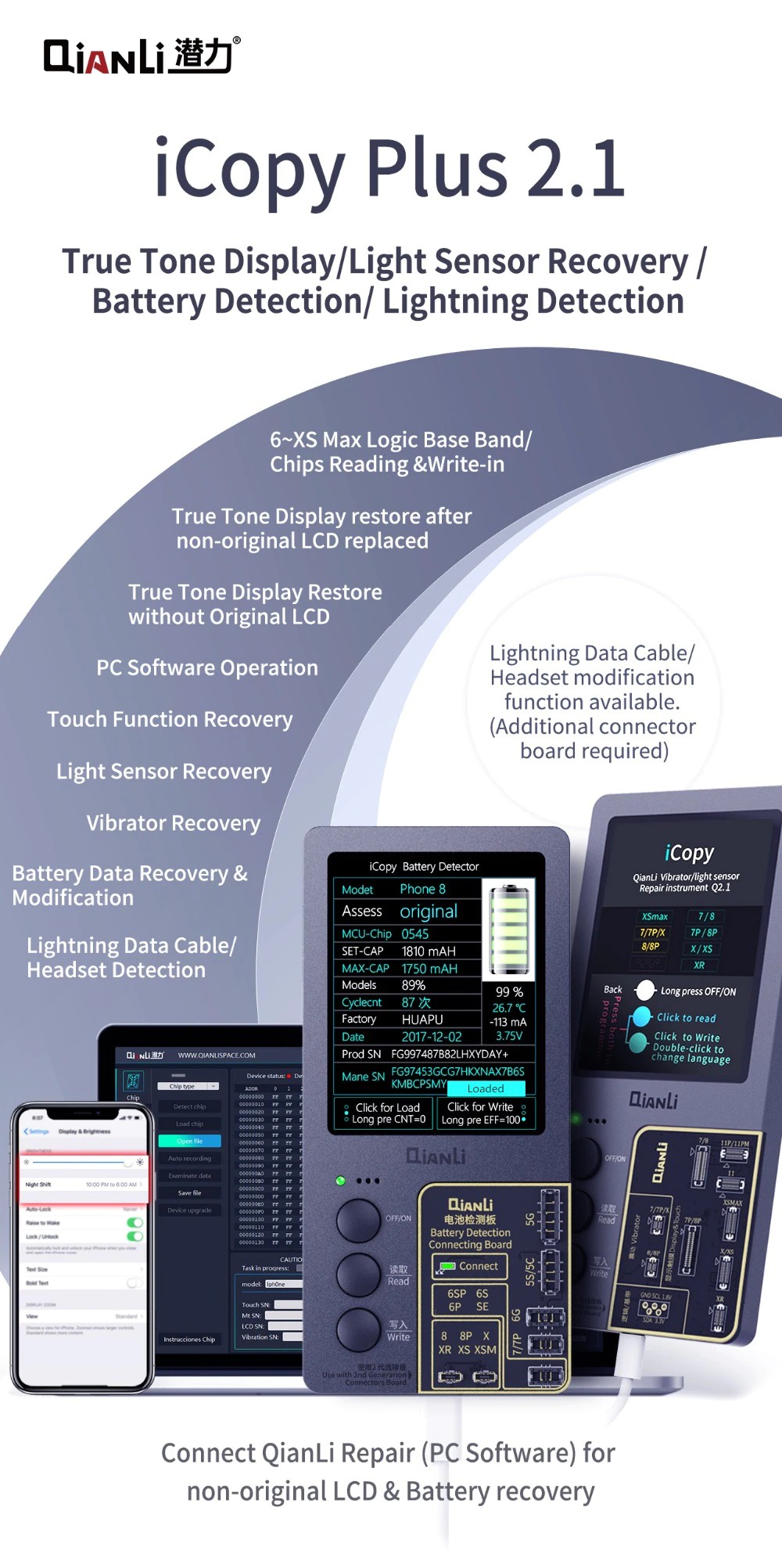 Qianli-Placa De Teste Icopy Plus 2.1 Para Celular, Programador Eeprom, Transferência De Vibrador Lcd Para Modelos 7 8 8P X Xr Xs Xsmax, 11 Pro Max