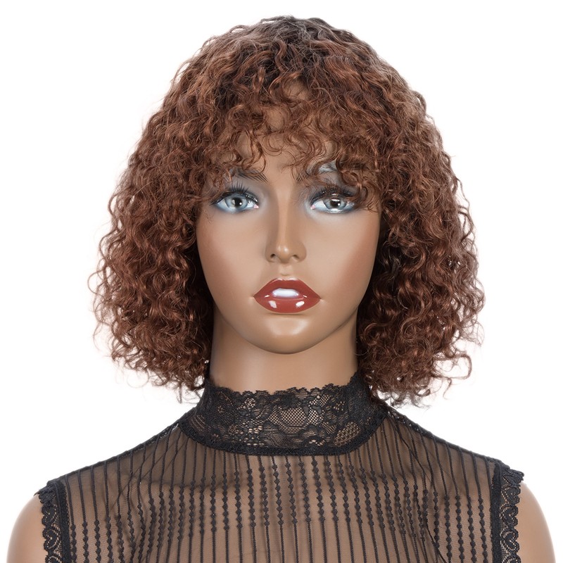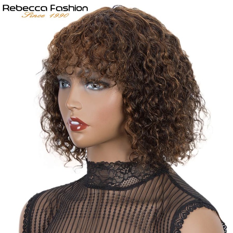 Jerry Encaracolado Curto Pixie Bob Corte Perucas De Cabelo Humano Com Franja Peruca Dianteira Do Laço Não Destaque Mel Loira Perucas Coloridas Para Mulher