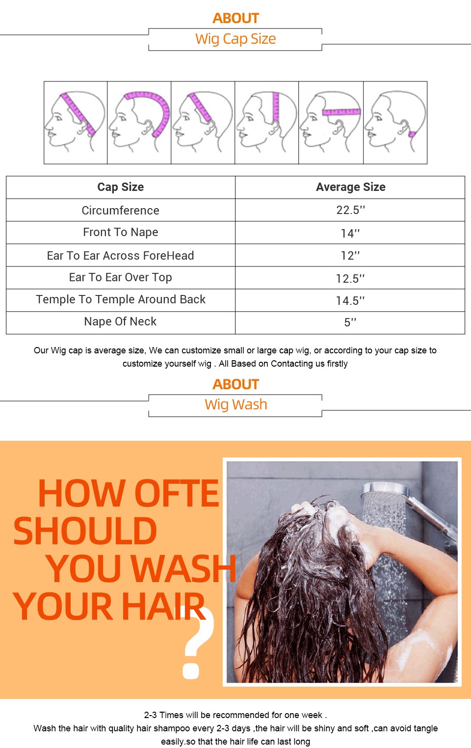O perímetro do cabelo é 21.5-21.75 polegadas, frente para trás 14 polegadas, orelha a orelha 13.75 polegadas