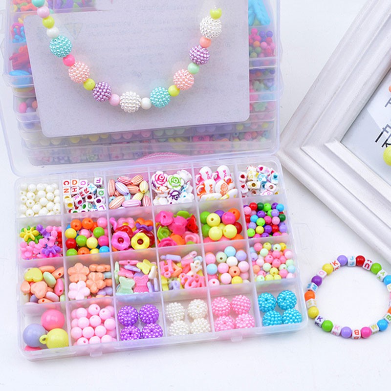 Diy grânulos brinquedos para crianças 24 grade artesanal crianças fazendo quebra-cabeças contas para meninas kit pulseiras meninas brinquedos para 3 5 7 9 11