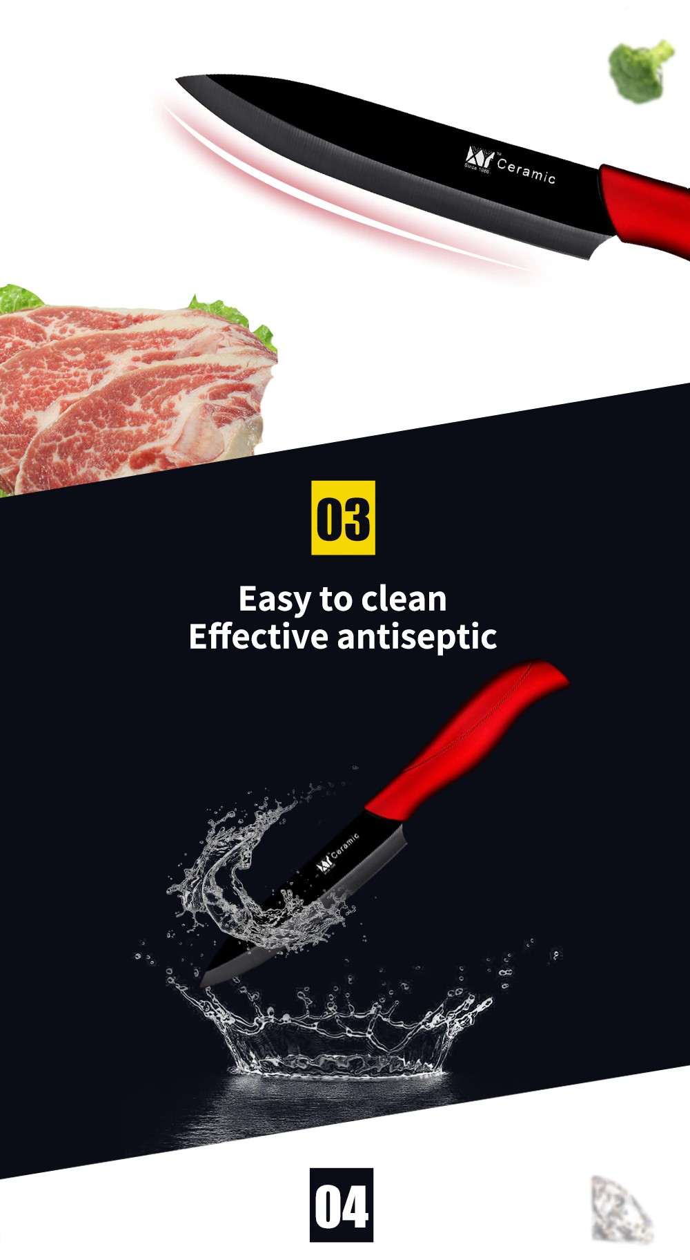 Ser usado em placa de corte de plástico ou madeira e evitar cortar alimentos congelados ou na superfície de mármores, vidro e placa de aço.
