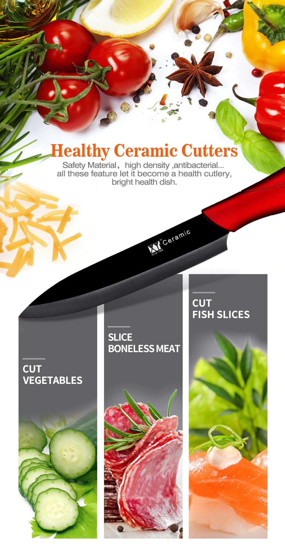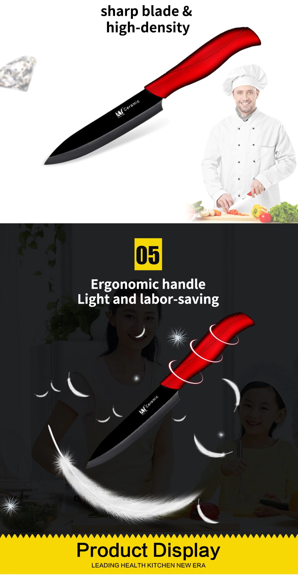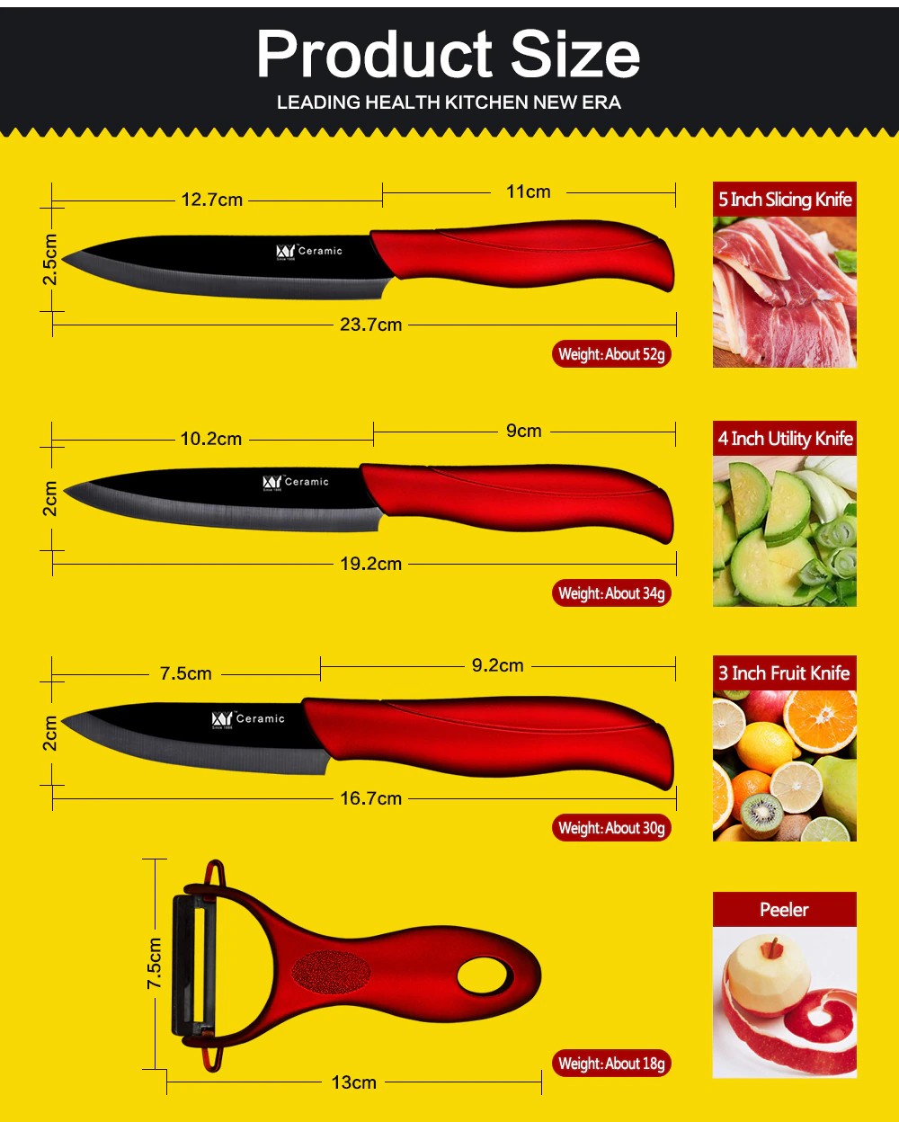 Xyj Faca De Cozinha Conjunto De Faca Cerâmica 3 &Quot;4&Quot; 5 &Quot;Polegadas + Descascador Livre Vermelho Roxo Azul Multi-Cores Abs + Tpr Lidar Com Acessórios De Cozinha