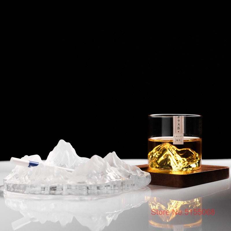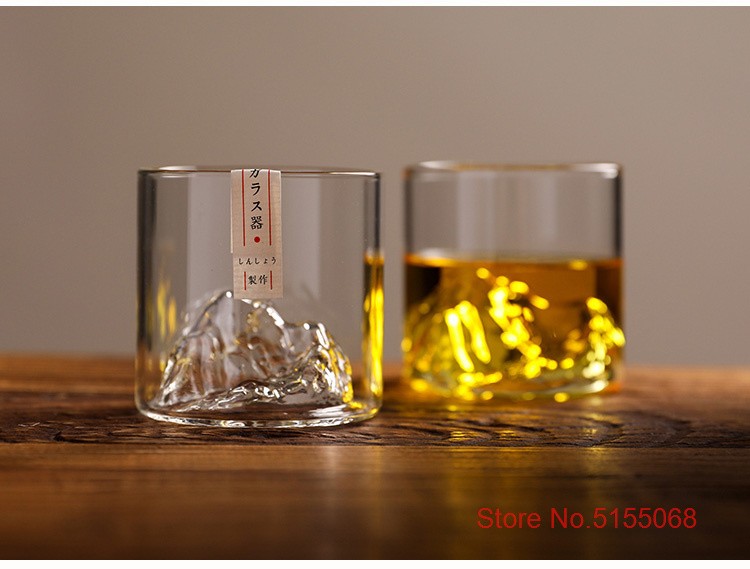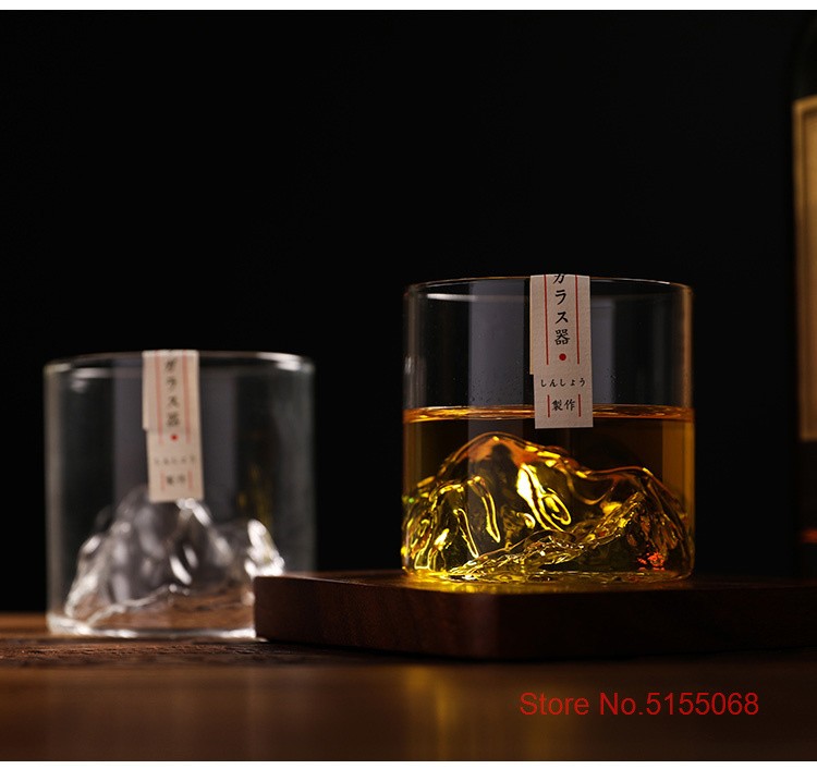 Grandes 3D Montanhas Copos De Uísque Japonês À Moda Antiga Uísque Rock Vidro Uísque-Caixa De Presente Madeira Vidro Vodka Copo De Vinho