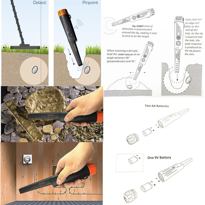 Versão atualizada shrxy GP-POINTERII é diferente de qualquer outro pinpointer no mercado. Usando o circuito dentro do alojamento shrxy. O srhxy tem a resposta proporcional excelente, o beeper selecionável e/ou o vibrador, luz conduzida mais robusta, laços da correia, operação da bateria do tempo mais longo, e uma carcaça à prova de intempéries com marcações de profundidade fazem o ponteiro shrxy o ponteiro mais completo no mercado.