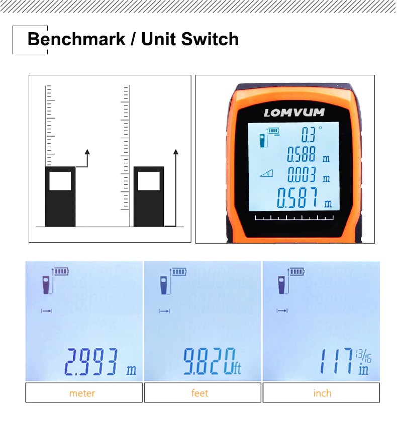Lomvum novo medidor de laser com nivelamento eletrônico que é mais preciso do que bolhas de nivelamento. Melhor preço e melhor função!