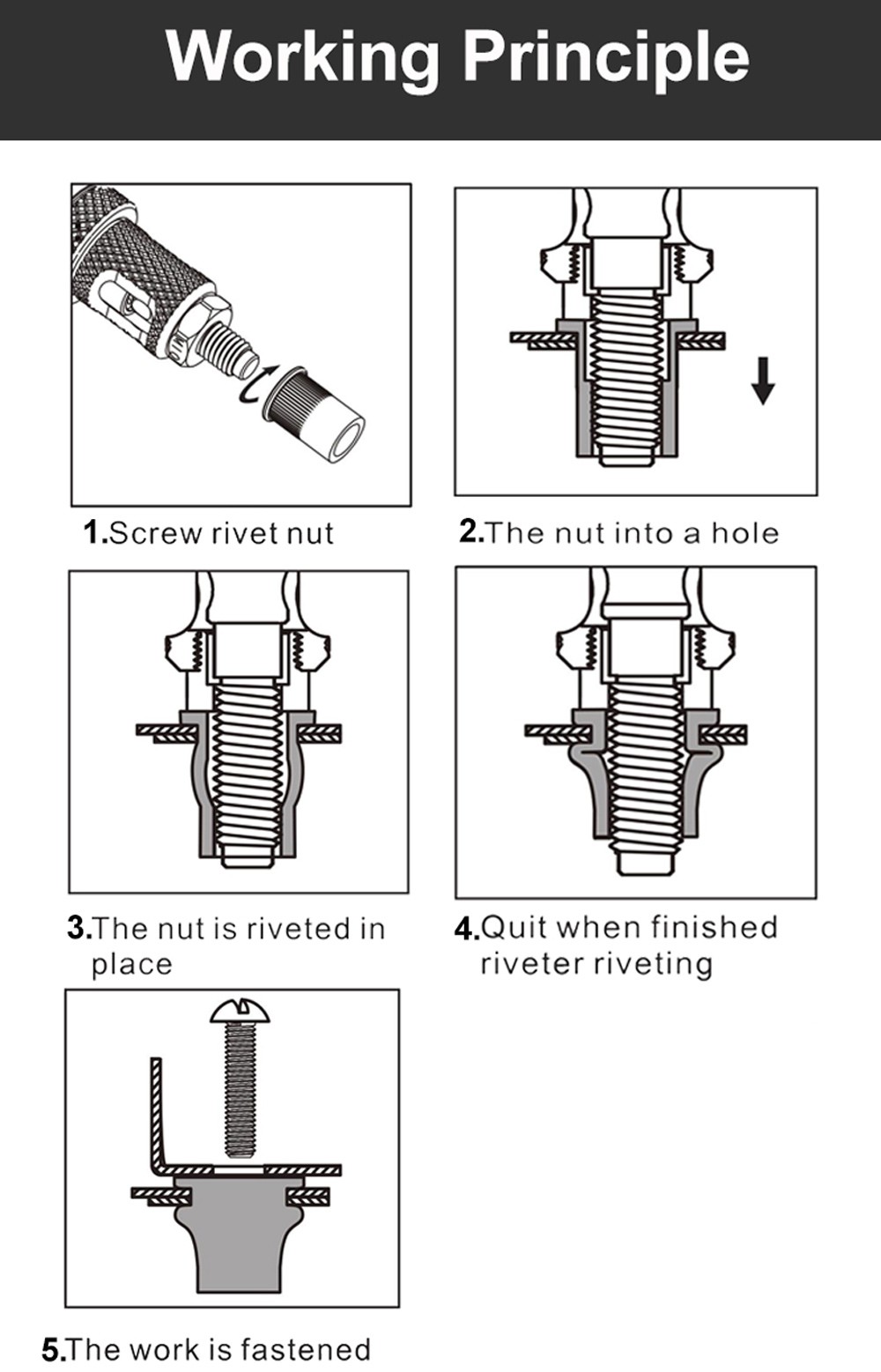 O pólo de porca de rebitagem e a porca levam a boca para ser possível necessário montar estão deixando de lado juntos.