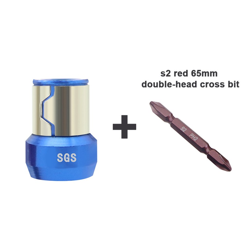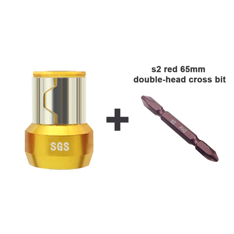 1pc vermelho/azul/amarelo anel magnético chave de fenda cabeça + 1pc s2 vermelho 65mm duplo-cabeça cruz bit.