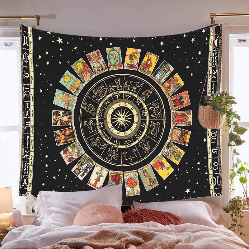 Tapeçaria De Tarô Mandala, Roda Do Zodíaco, Astrologia Gráfico E Os Principais Arcana Sol E Lua, Decoração De Casa