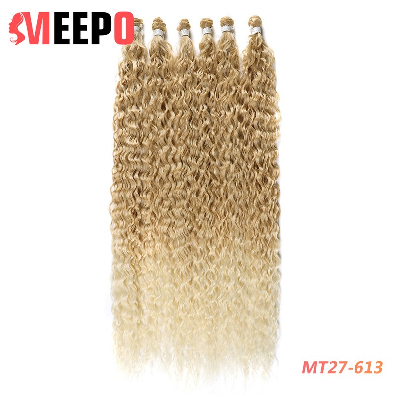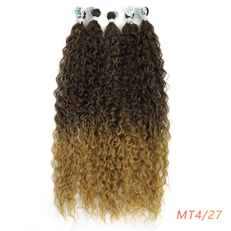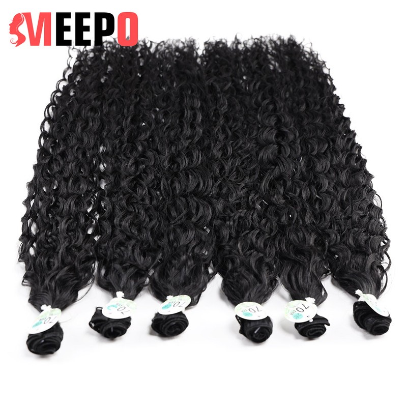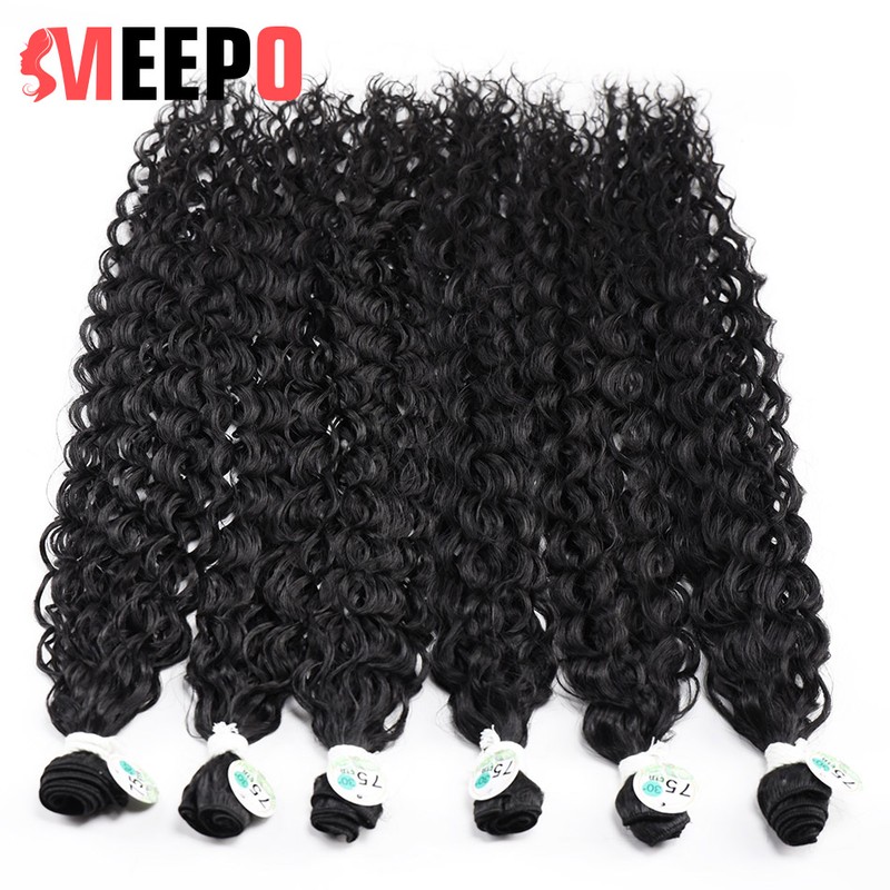 Cabelo Sintético De Meepo Pacotes Kinky Encaracolado Extensões De Cabelo Ombre Preto 70-80Cm Macio Super Longo Tecelagem Hairtress 9 Pcs Cabeça Cheia