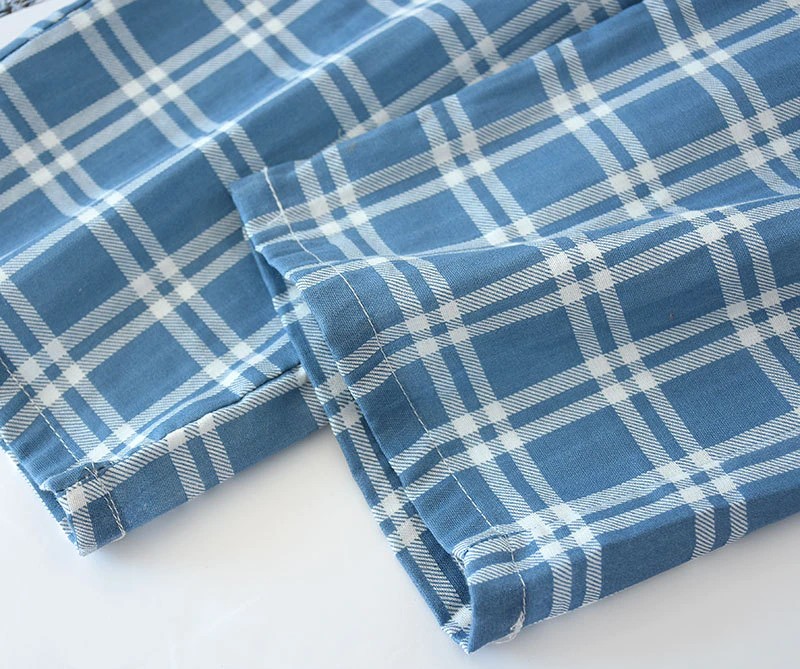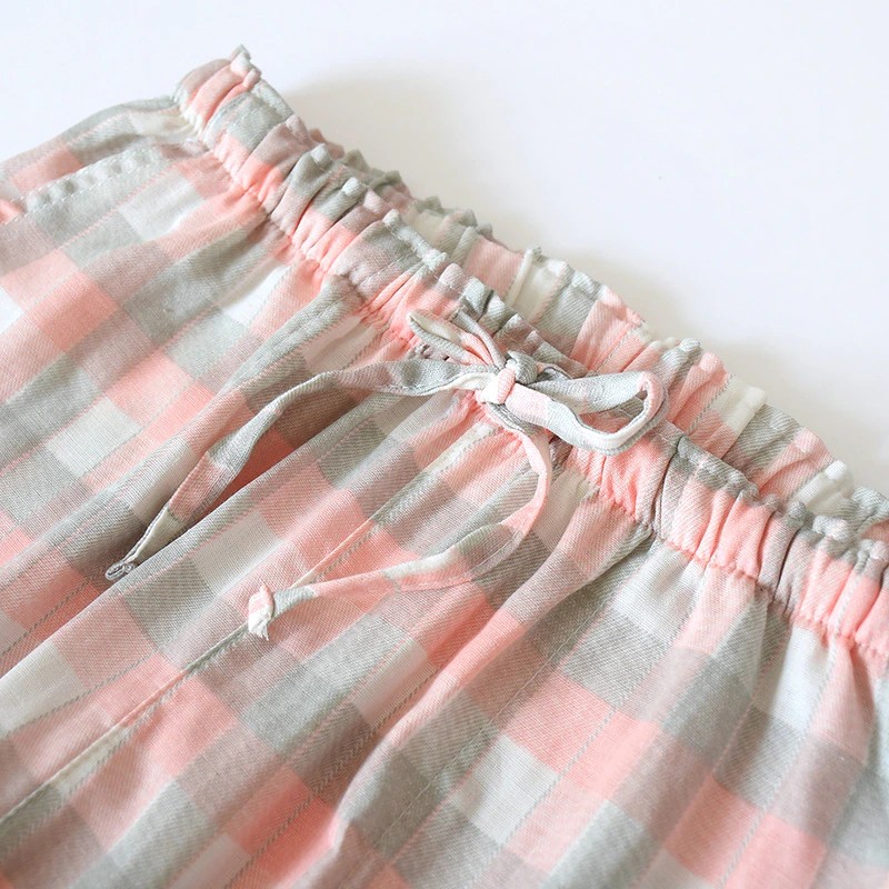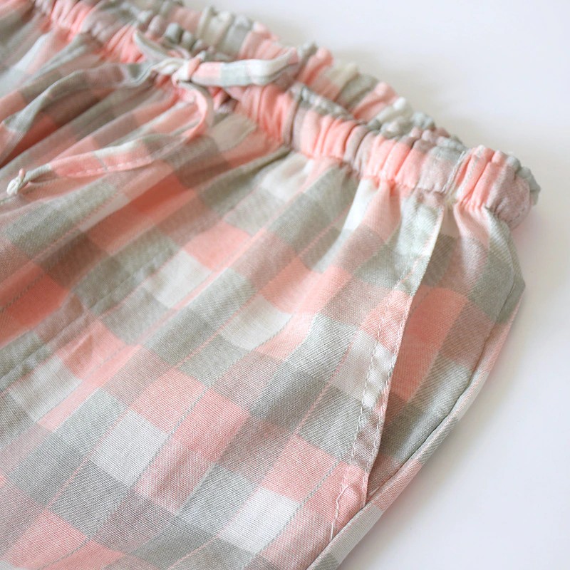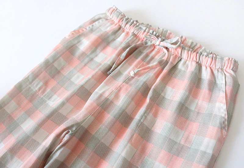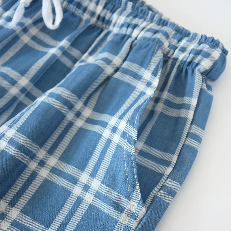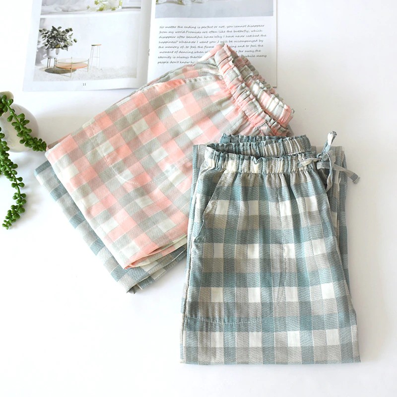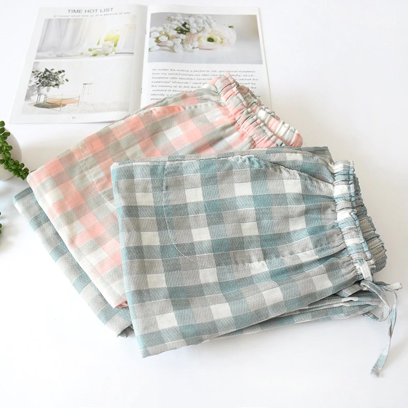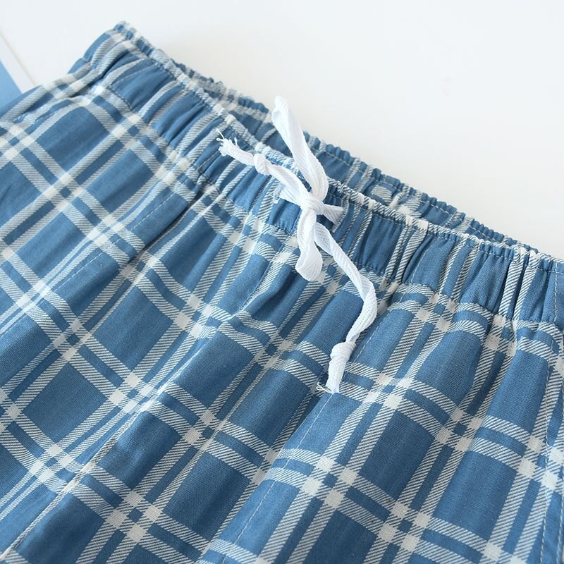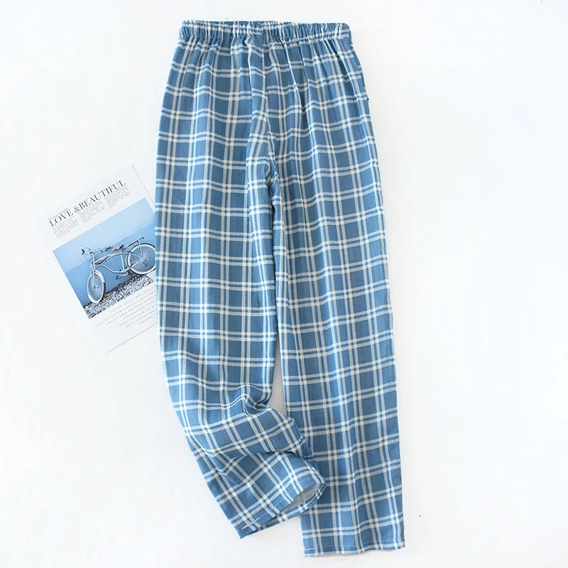 Calças De Gaze Xadrez De Algodão Para Homens, Calças Dormir Femininas Calças De Pijama Para Casais