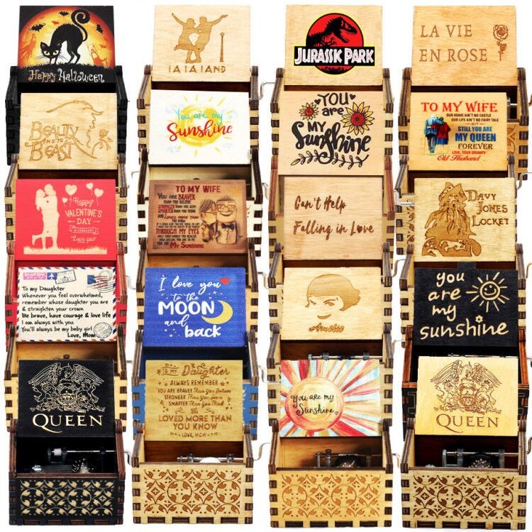 Em estoque atacado mão dobrada madeira caixa de música presente de natal