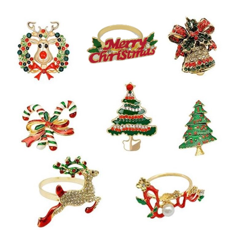 Guardanapo De Natal Anéis-Conjunto De 8 Anéis Suporte Guardanapo Para O Feriado Decoração Mesa De Natal Elk Guardanapo Fivela