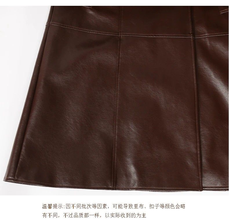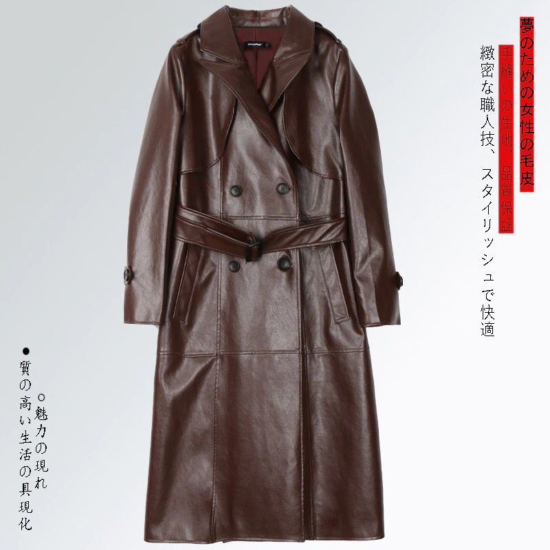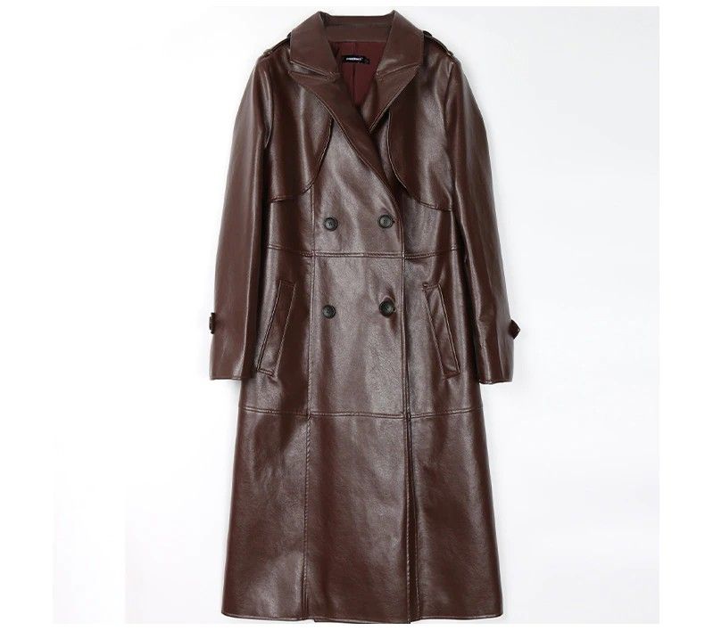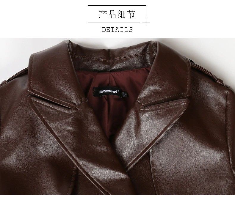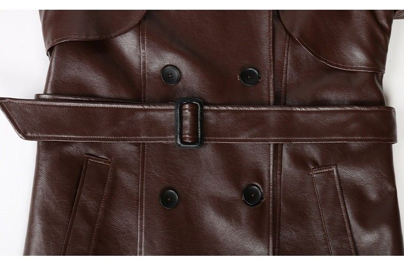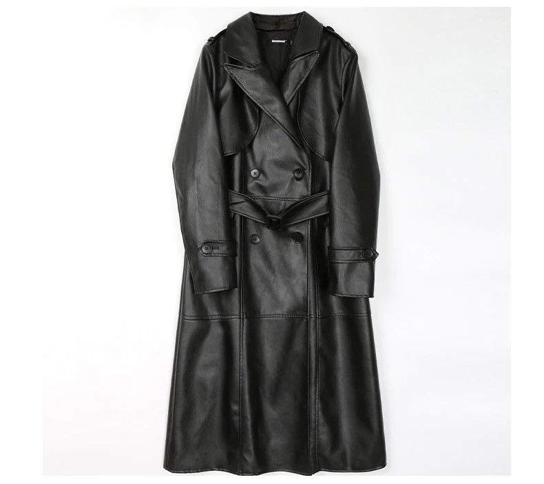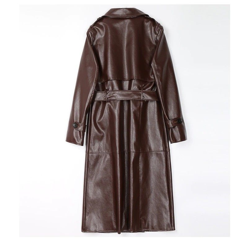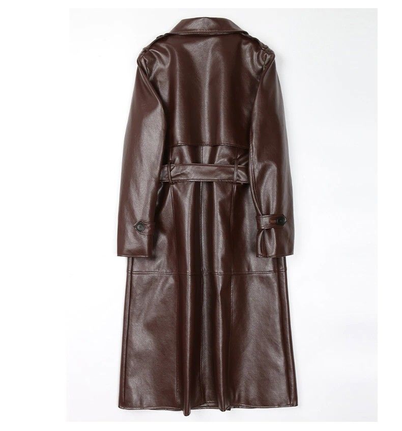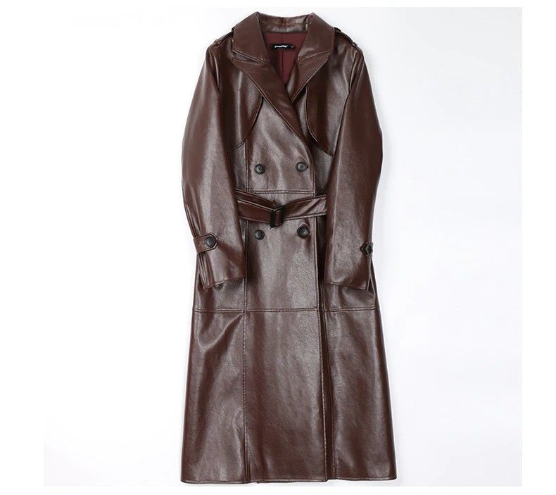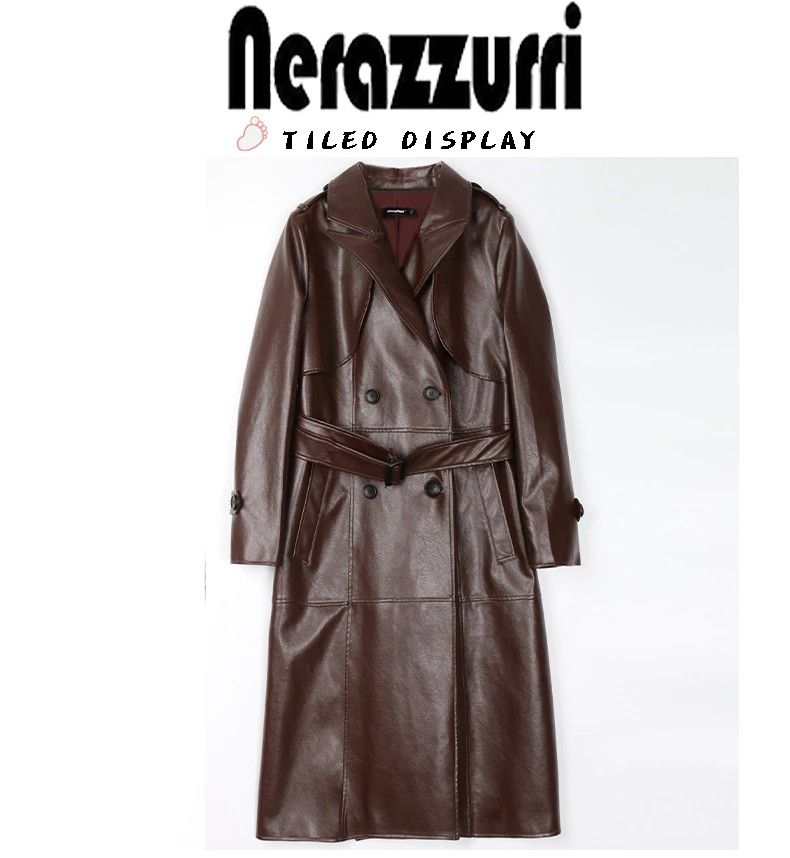 Nerazuri Casaco Longo De Couro Falso Feminino, Casaco Para Mulheres Longo Com Cinto De Manga Comprida, Estilo Double Breasted Plus Size Moda Outono Mais recentes, 7Xl