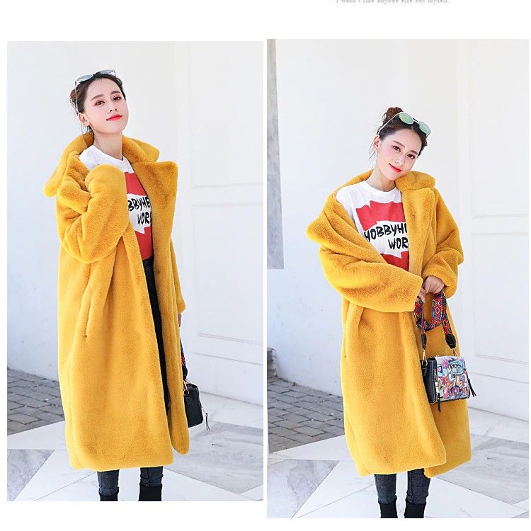 Casaco Feminino Quente De Pele Sintética, Casaco Grosso Longo Com Gola Virada Para Baixo, Novo, O mais novo