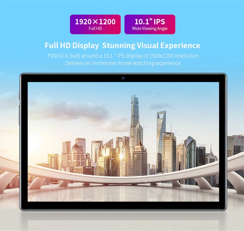 P20hd é construído em torno de uma tela ips de 10.1 "de resolução 1920x1200.