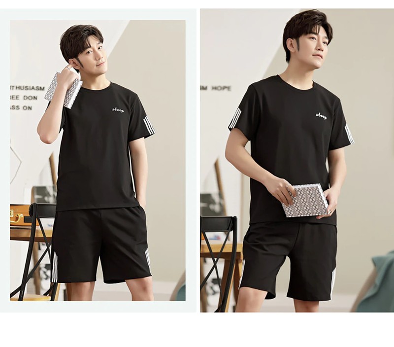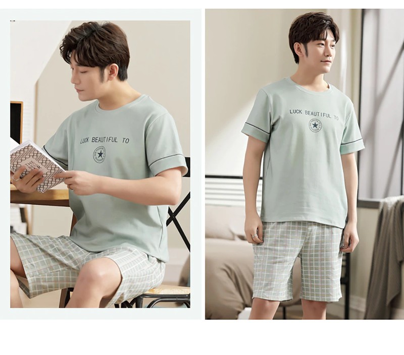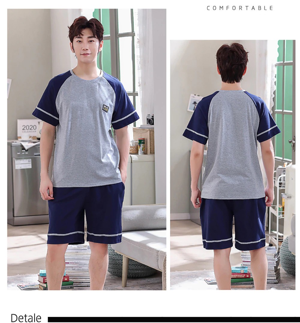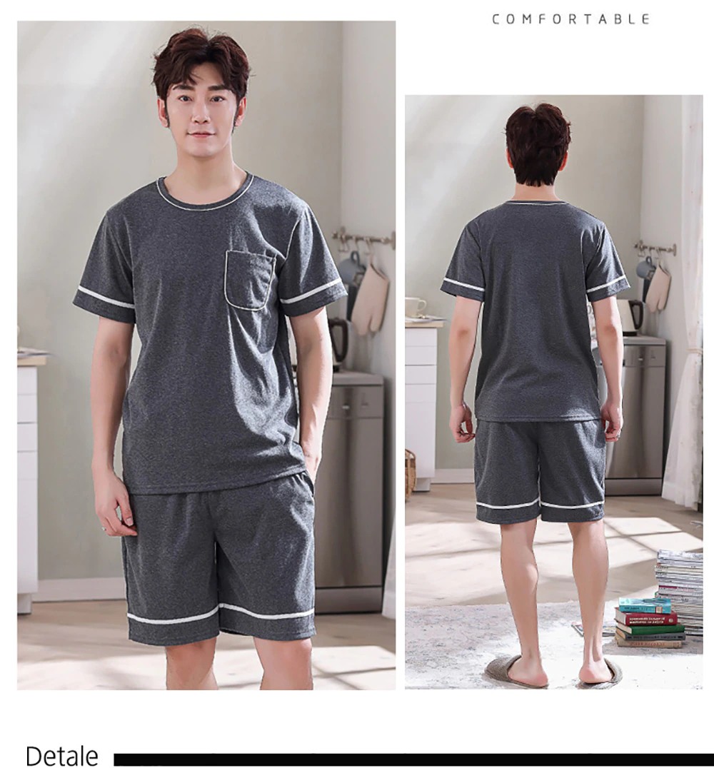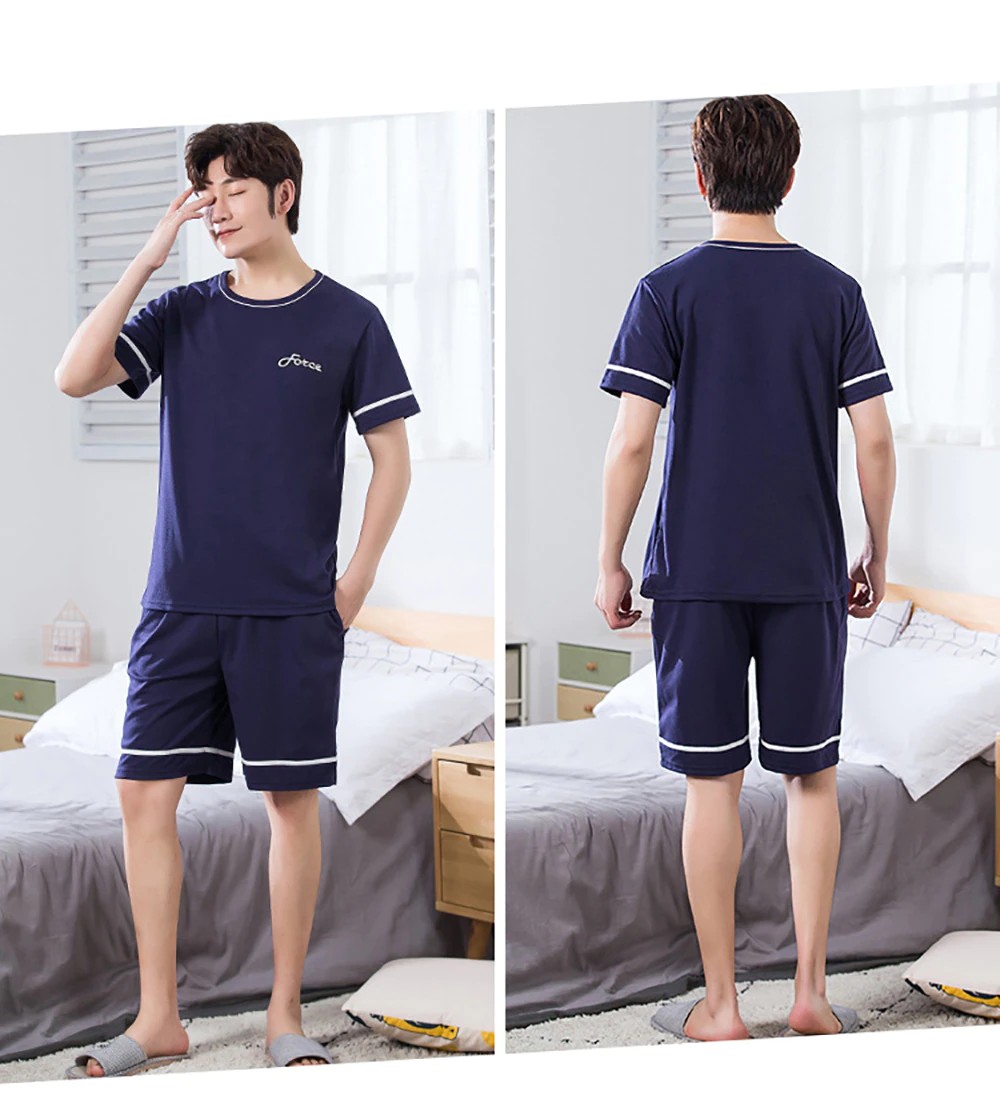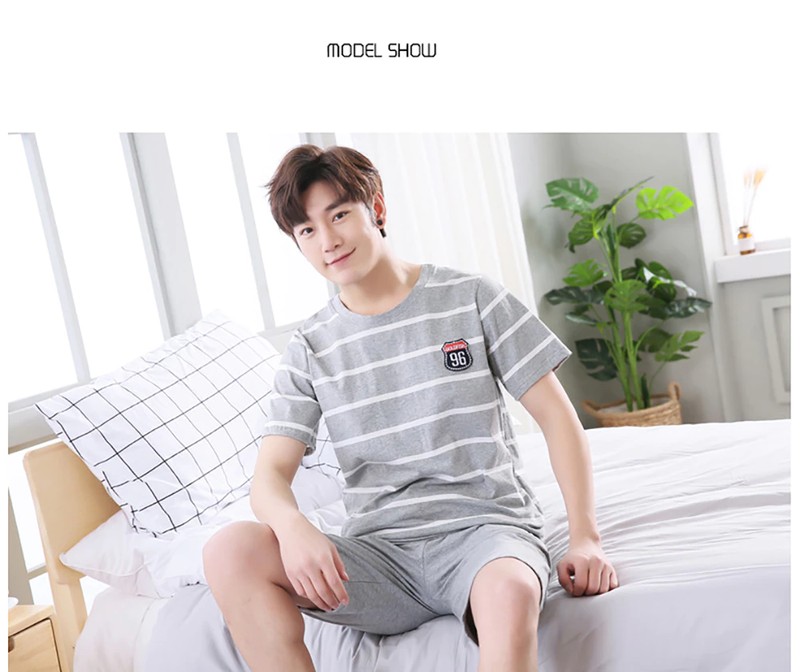 Plus Tamanho Pijamas Para Homem Casual Algodão Impressão Pijama Define Verão Manga Curta + Elástico Listrado Shorts Casa Terno Pijamas