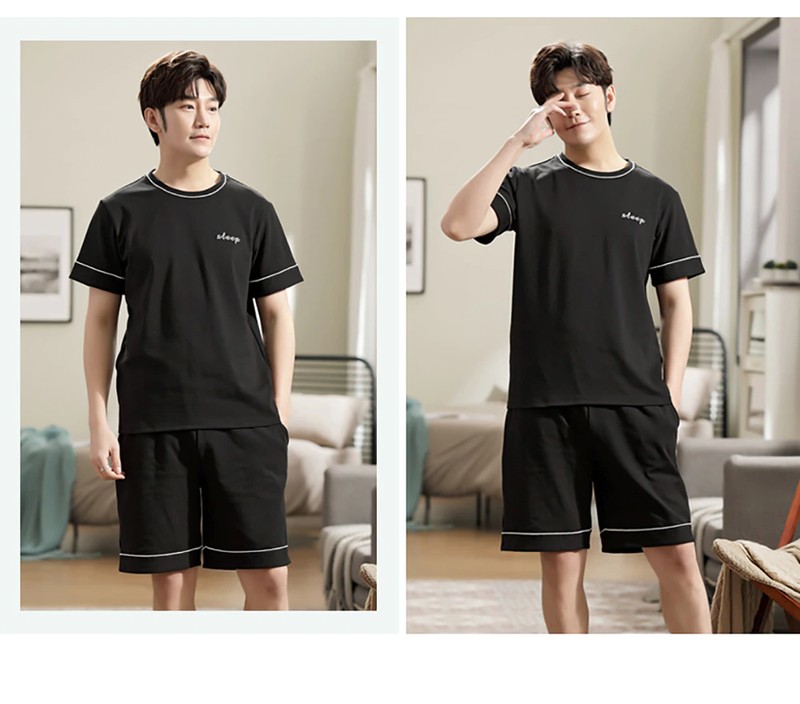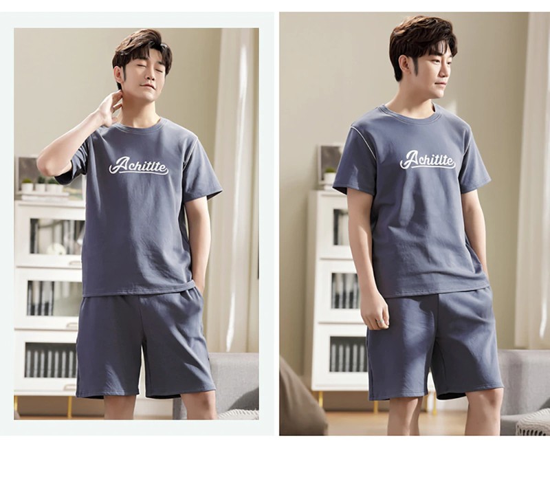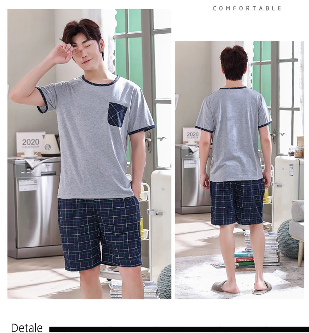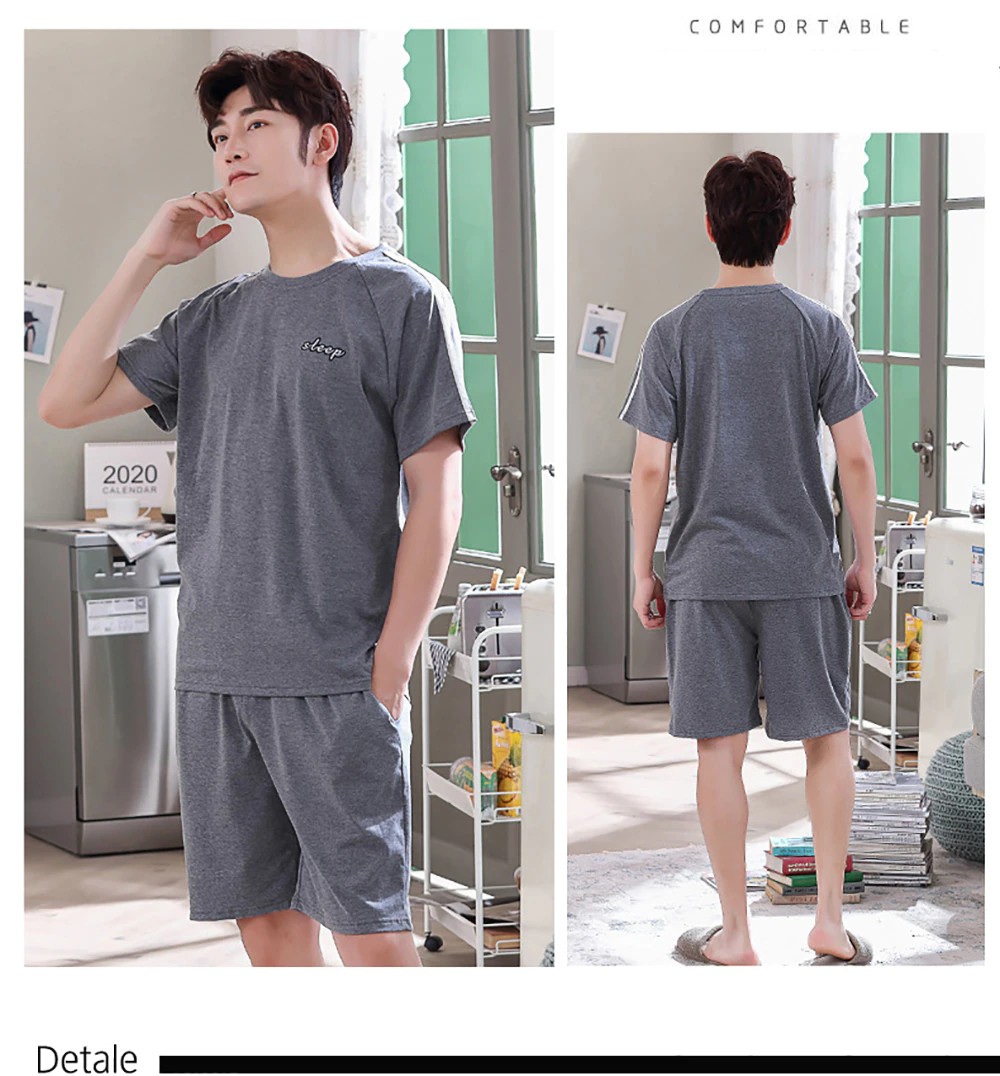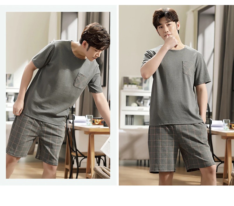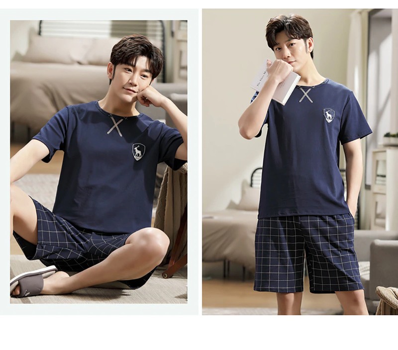 Plus Tamanho Pijamas Para Homem Casual Algodão Impressão Pijama Define Verão Manga Curta + Elástico Listrado Shorts Casa Terno Pijamas