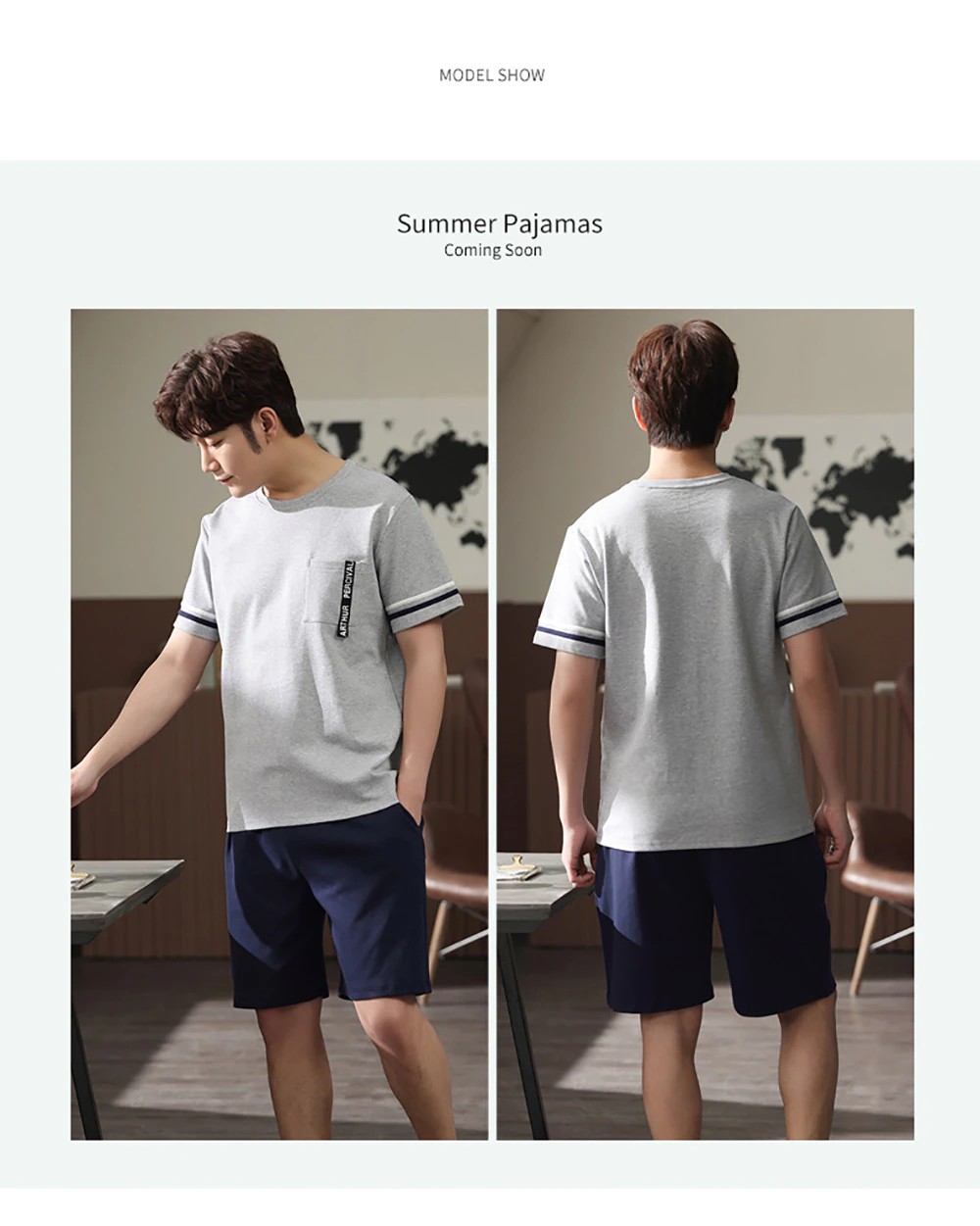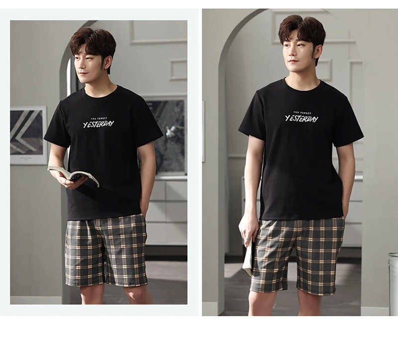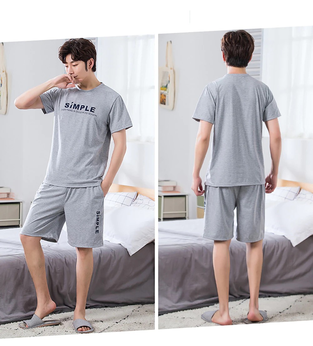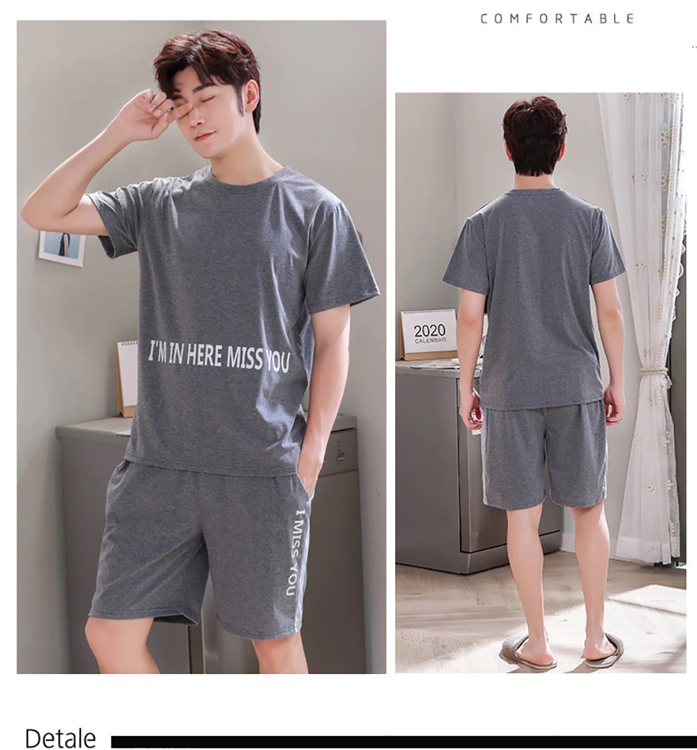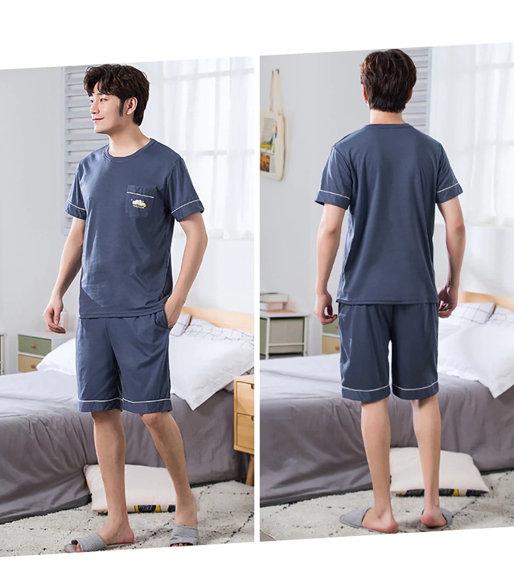 Plus Tamanho Pijamas Para Homem Casual Algodão Impressão Pijama Define Verão Manga Curta + Elástico Listrado Shorts Casa Terno Pijamas