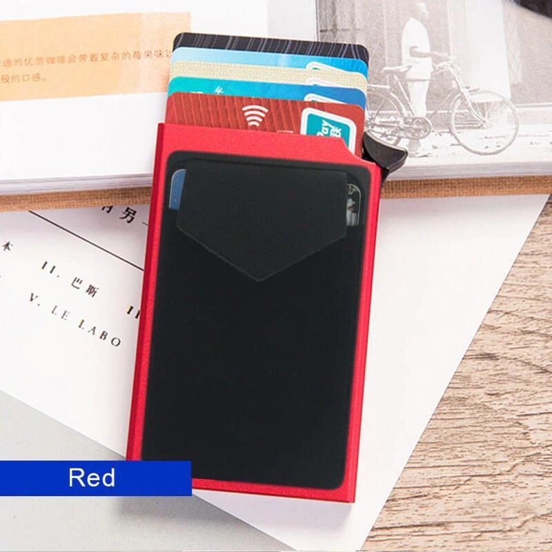 Pop-Out Rfid Titular Do Cartão De Alumínio Fino Carteira Elasticidade Voltar Bolsa Id Titular Do Cartão De Crédito Bloqueio Proteger Viagem Id Titular Do Cartão