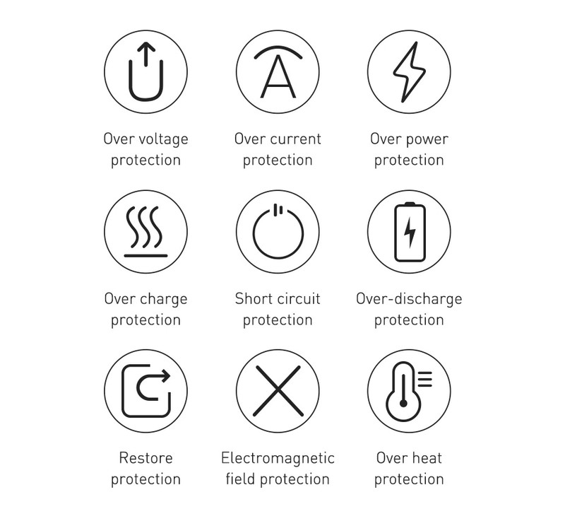 Capacidade: 30000mAh / 3.7V (111Wh), 20000mAH / 3.7V (74Wh), 10000mAH / 3.7V (37Wh)