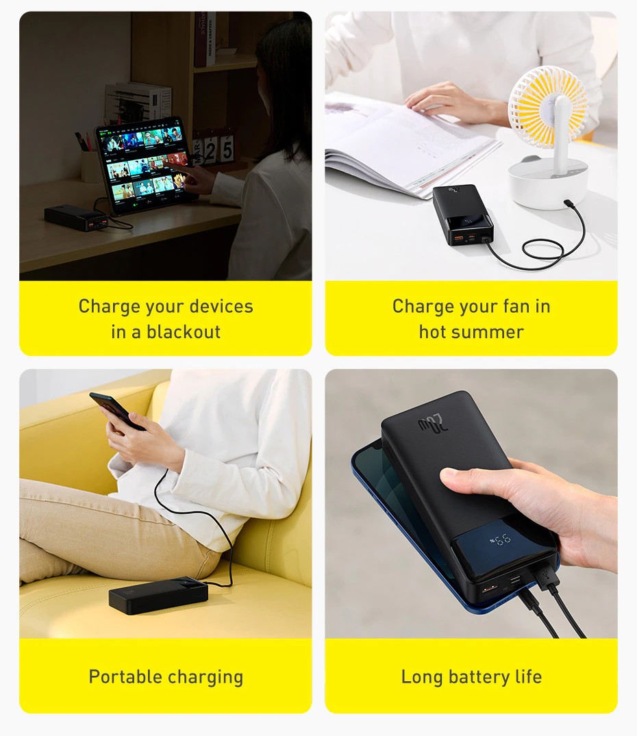 Baseus Power Bank 20000Mah Carregador Portátil Powerbank 10000 Bateria Externa Pd 20W Carregamento Rápido Para Iphone 13 Xiaomi Poverbank