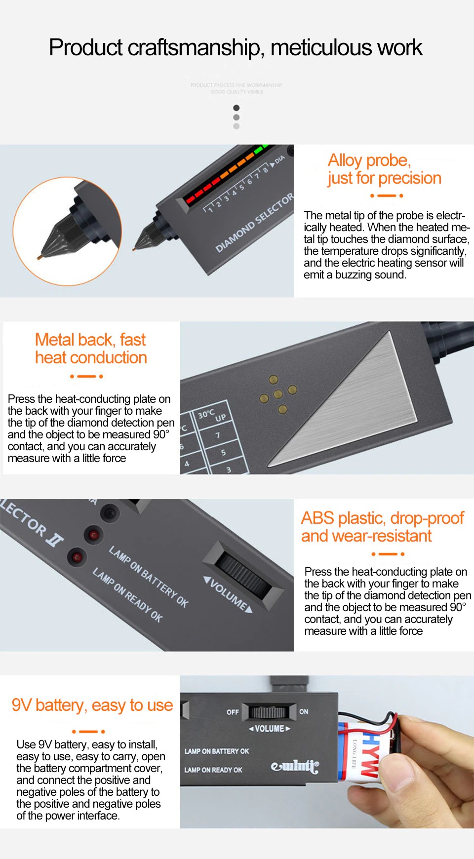 1. o medidor de condutividade térmica é um instrumento eletrônico especialmente projetado e fabricado de acordo com a condutividade térmica dos diamantes para identificar a autenticidade dos diamantes.