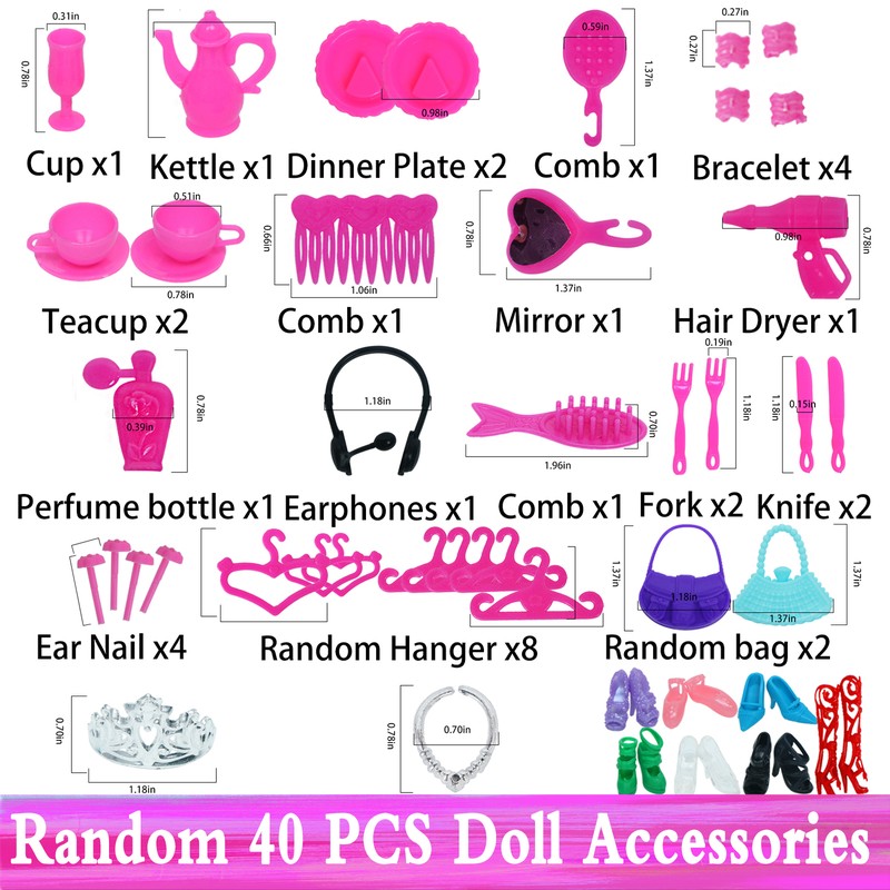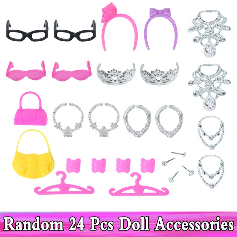 # Aleatório 24 pcs: 4x óculos + 4x cabeça usa + 8x colares + 2x bolsas + 2x cabides + 4 pequenos acessórios.