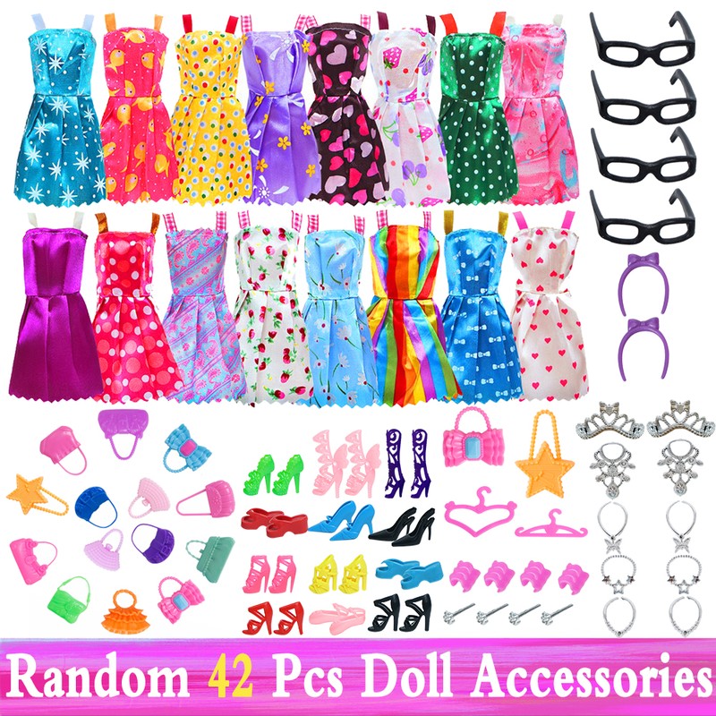 Aleatório 1 Conjunto De Acessórios Para Boneca Barbie Sapatos Botas Mini Vestido Bolsas Coroa Cabides Óculos Boneca Roupas Crianças Brinquedos 12 '12