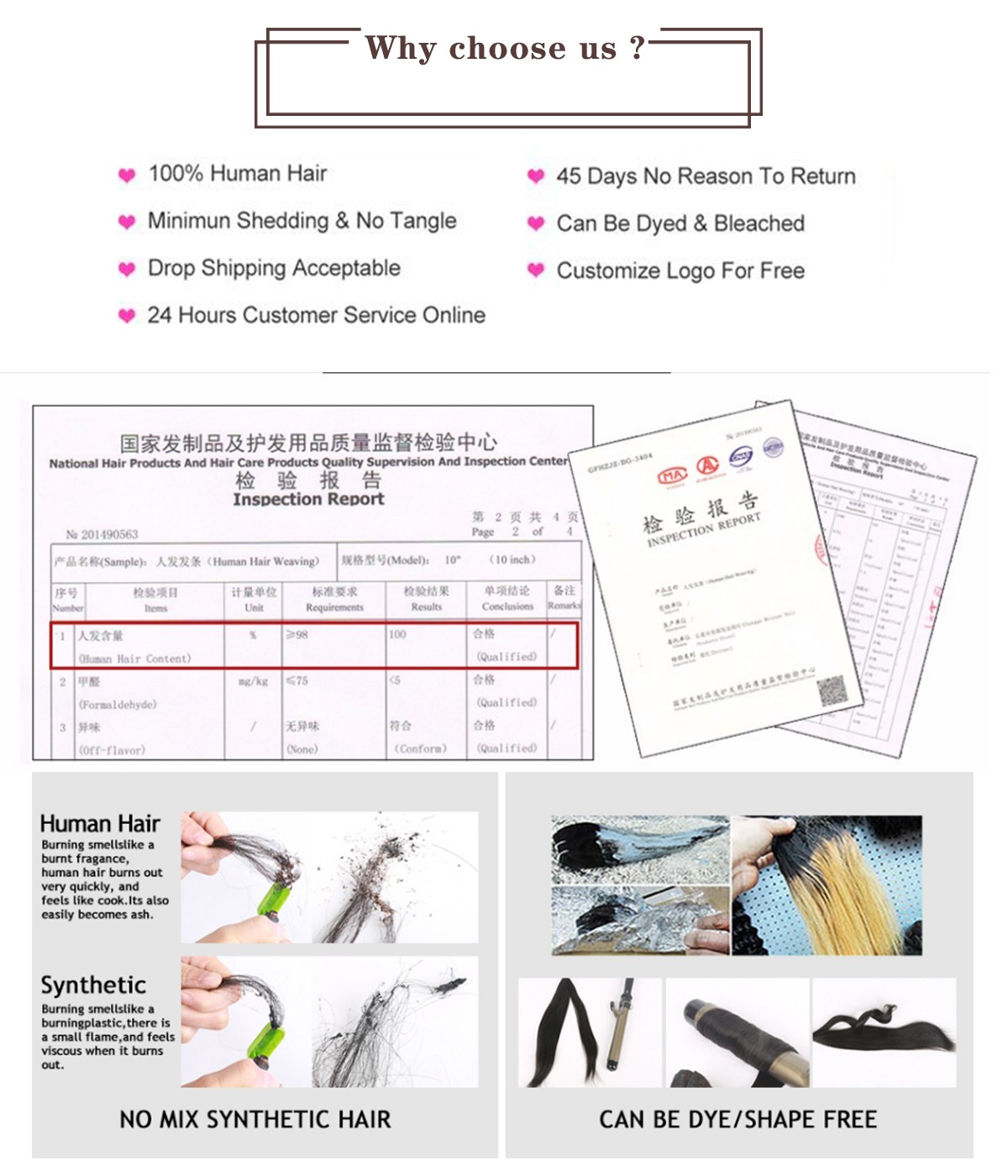 Densidade do cabelo: 150%, 180% outra densidade pode ser feita sob encomenda em 3-5 dias