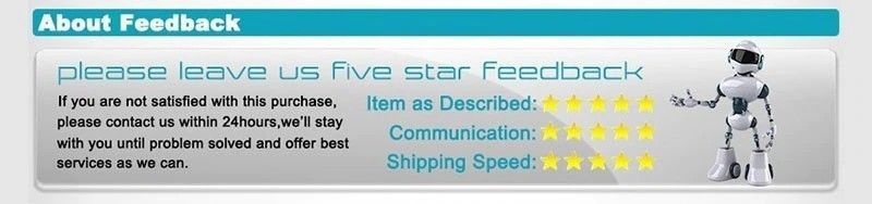 * Nós forneceremos feedback positivo assim que o pagamento for recebido. Para promover uma comunidade saudável ali, esperamos que você faça o mesmo por nós. Queremos que você entenda que valorizamos muito o serviço ao cliente. Se você tiver qualquer insatisfação, por favor nos dê a oportunidade de resolver o problema antes de nos deixar um feedback negativo. Temos certeza de que há sempre uma solução e com certeza não queremos que um feedback ruim seja onde a transação termina.