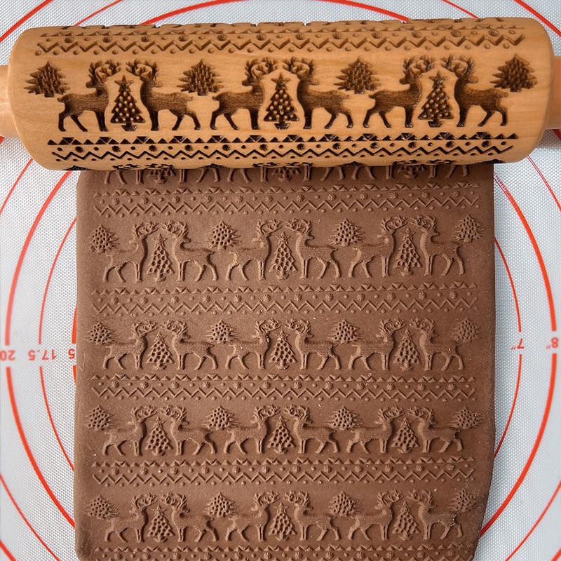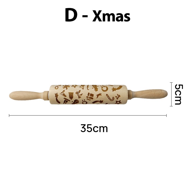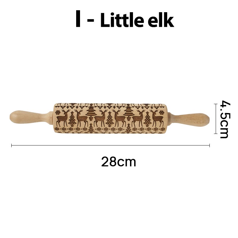 Christmas Rolling Pins Rock Snowflake Elk Wooden Rolling Embossing Baking Cookies Biscuit Fondant Cake Patterned Roller 35*5Cm