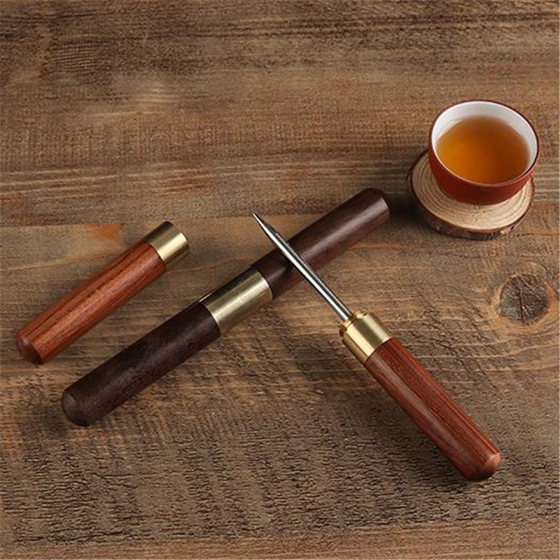 Sândalo faca de chá agulha picareta com alça de madeira ferramentas de chá puer cone agulha quebrando curiosos chá tijolo ferramenta profissional