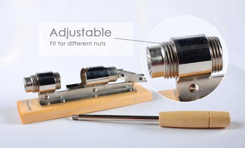 -Tamanho ajustável-O espaço de rachadura da porca poderia ser ajustado do mínimo quase 0 polegadas ao máximo 2.5 polegadas. pequeno como amêndoas, grandes como nozes, quase todas as porcas feitas sob medida são apropriadas para este quebra-nozes