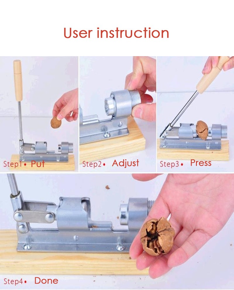 -Funciona em várias porcas-O sheller de nozes pode ser usado na maioria das nozes comuns, incluindo nozes, nozes do brasil, castanha, avelãs, amêndoas, amendoins. (Nota: pode não funcionar para nogueira preta dura. macadâmia e porcas de casca dura semelhantes.)