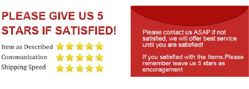 Feedback: 1. deixe um comentário de 5 estrelas se estiver satisfeito com nossos produtos e serviços, iremos apreciá-lo (item como descrito 5 estrelas, comunicação 5 estrelas, tempo de envio 5 estrelas). 2. se os produtos que você recebeu foram estilos danificados ou errados, por favor, não deixe nenhum feedback negativo primeiro, por favor, entre em contato conosco, nós trataremos disso e resolveremos as melhores soluções, a sua satisficação é a nossa moção de fazer melhor. Política de envio e devolução: 1. geralmente enviaremos pedidos dentro de 48 horas assim que o pagamento for recebido. 2. china post ordinary small packet plus e china post registered air mail demoram de 15 a 60 dias. 3. envios recomendados: envio padrão do Adafar-mais estável, mais seguro e rápido. 4. também oferecemos envios expressos como dhl, ups, ems, etc., não hesite em contactar-nos se precisar urgentemente ou a quantidade for grande.
