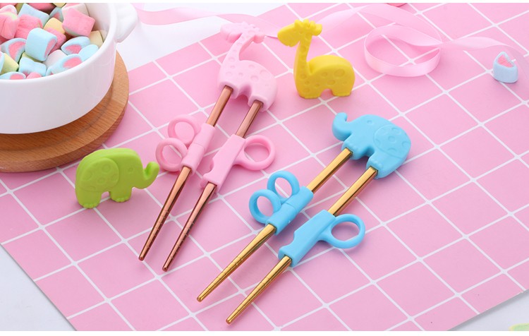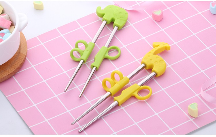 1 Par De Aço Inoxidável Pauzinhos Para Crianças Dos Desenhos Animados Aprendizagem Chop Sticks Treinamento Reutilizável Pauzinhos Bonito Crianças Conjunto De Utensílios De Mesa