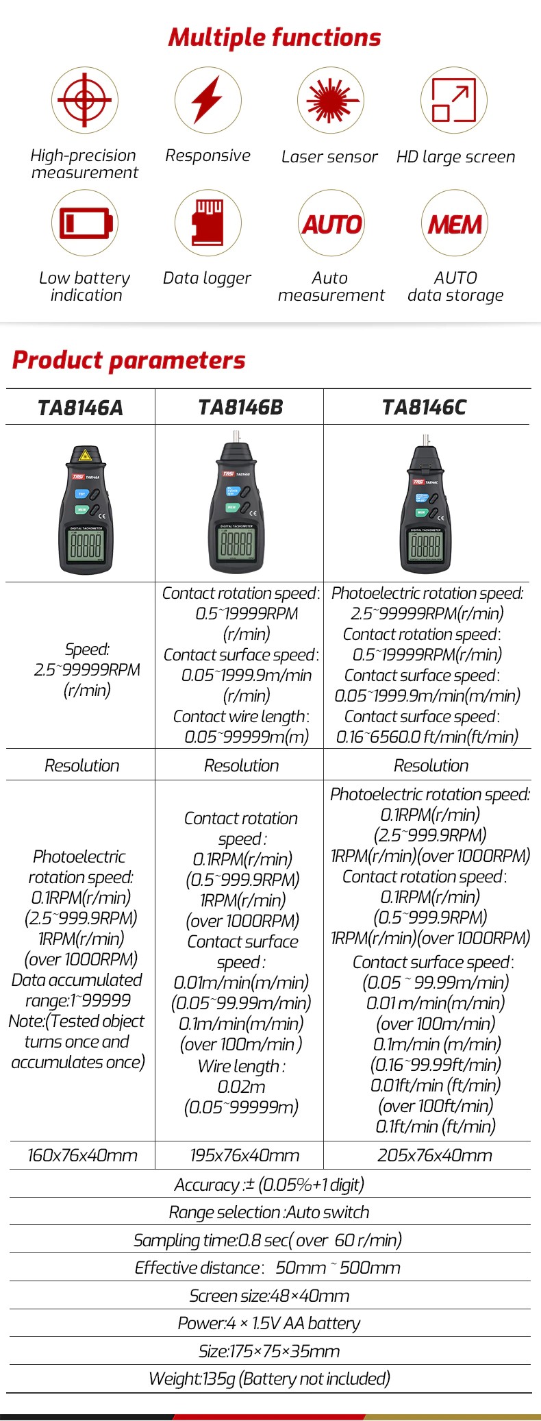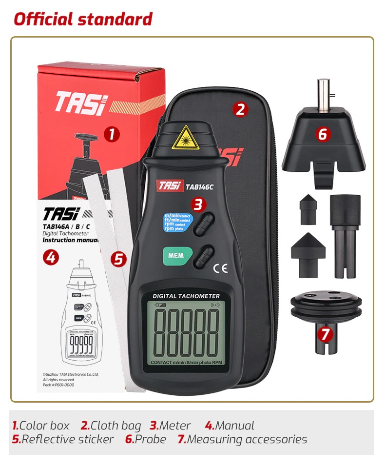 Tasi Ta8146A/B/C Tacômetro Digital Até 99999 Lcd Rpm Display Não-Contato Digital Laser Tacômetro Velocímetro Medidor De Velocidade