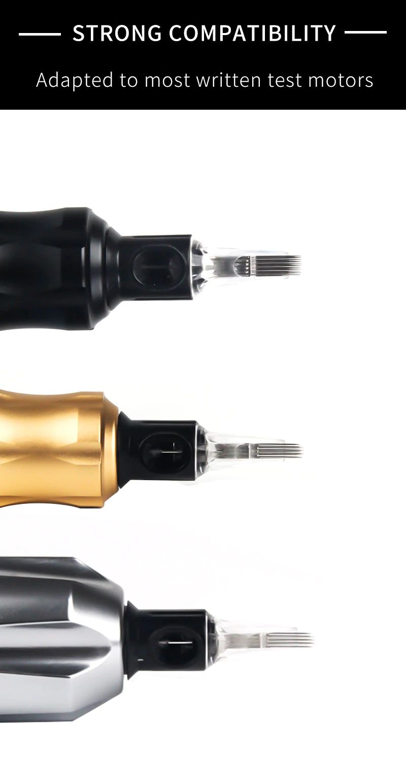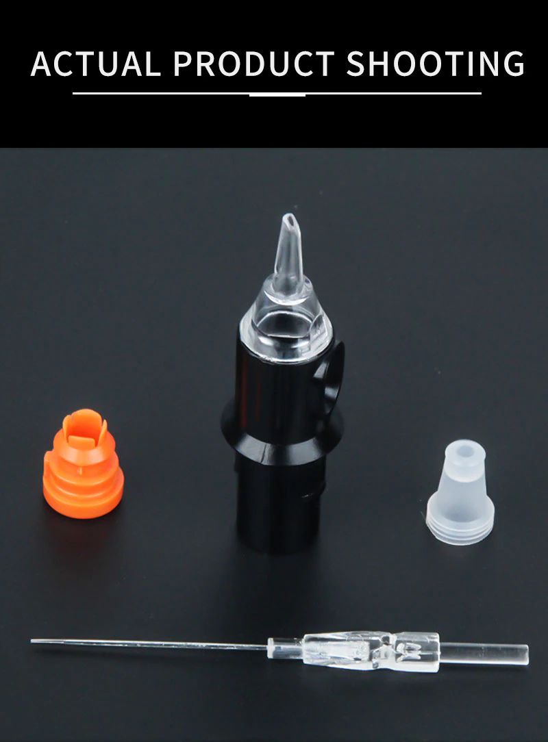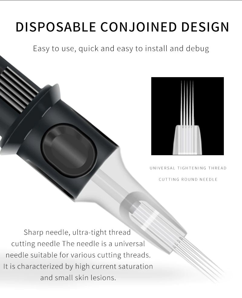 Características: -100% e.o esterilizado a gás e embalado individualmente -Bordas lisas eliminam trauma adicional -Agulhas feitas de aço inoxidável 316 de grau médico. pontas de plástico de grau médico -Membrana de segurança dentro do sistema -Proteção leve, melhor visibilidade -Ajuste exato para grupos de agulha e bordas lisas elimina trauma adicional Especificações: -Tipo de item: agulha de cartucho de tatuagem -Quantidade: 10pcs -Material: pvc translúcido resistente ao desgaste e aço médico