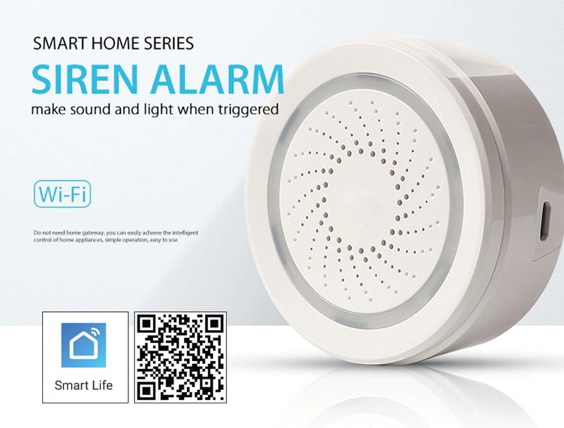 Alarme De Sirene Smart Life, Wi-Fi, Usb Com Sensor Sem Fio, Luz De Som