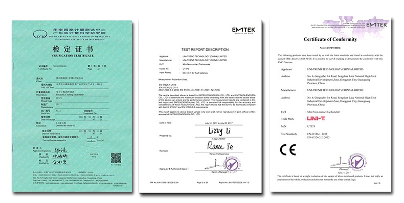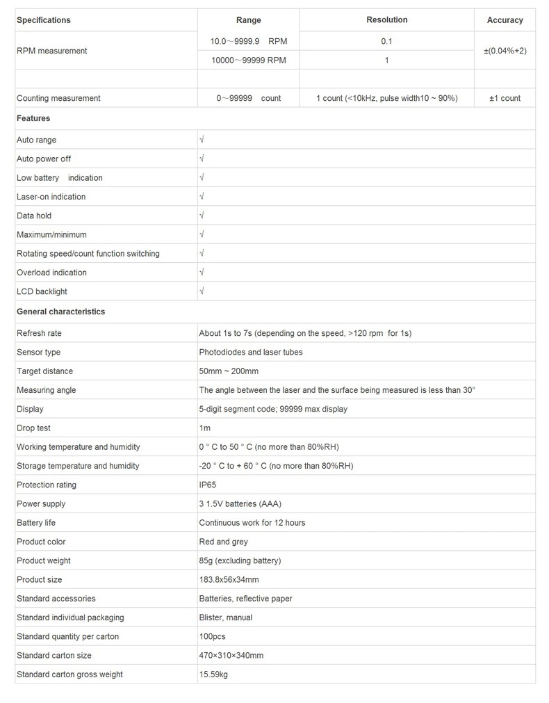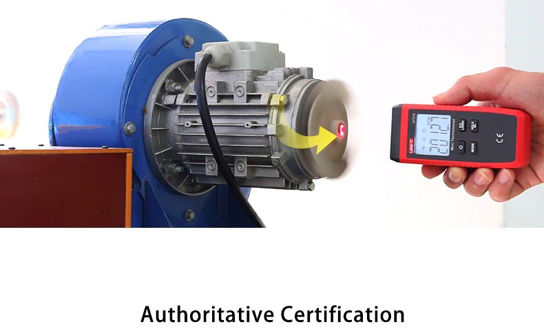 Ut373 é um tacômetro digital confiável do não-contato usado para medir a velocidade de rotação de motores e de outras máquinas. Este dispositivo é capaz de exibir resultados em rpm ou contagem da revolução. Este dispositivo portátil é capaz de medir com segurança objetos rotatórios através de um método não-intrusivo.