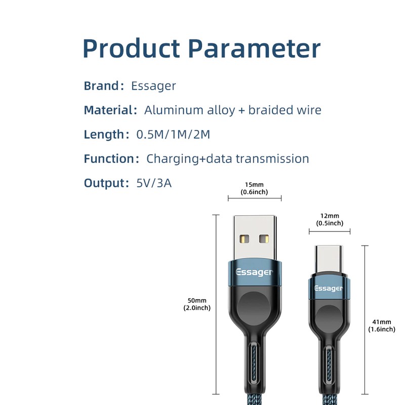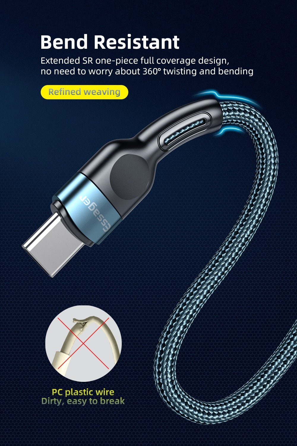 Essager Usb Tipo C Cabo Para Samsung Xiaomi Mi 3A Carregamento Rápido Usb-C Cabo Carregador Do Telefone Móvel Usbc Tipo-C Cabo De Fio De Dados 3M