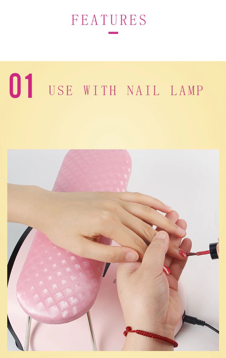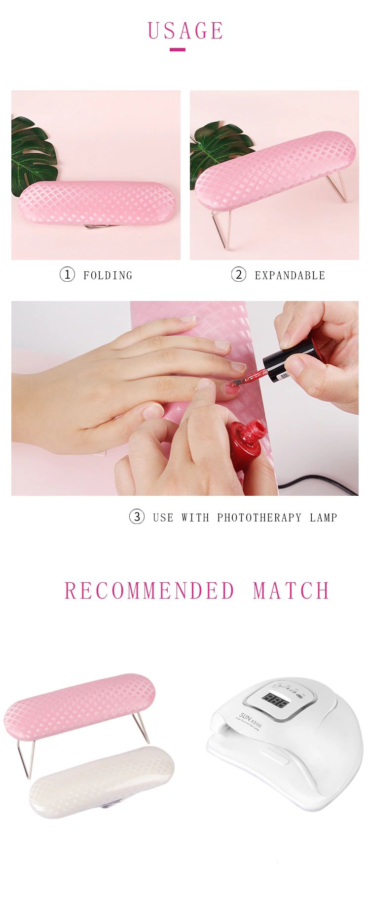 Travesseiro De Mão À Prova D'Água Para Arte De Unha, Suporte Pulso, Almofada Ferramenta Manicure Descanso Braço Couro Rosa, Almofada Uso Com Lâmpada Arte De Unhas