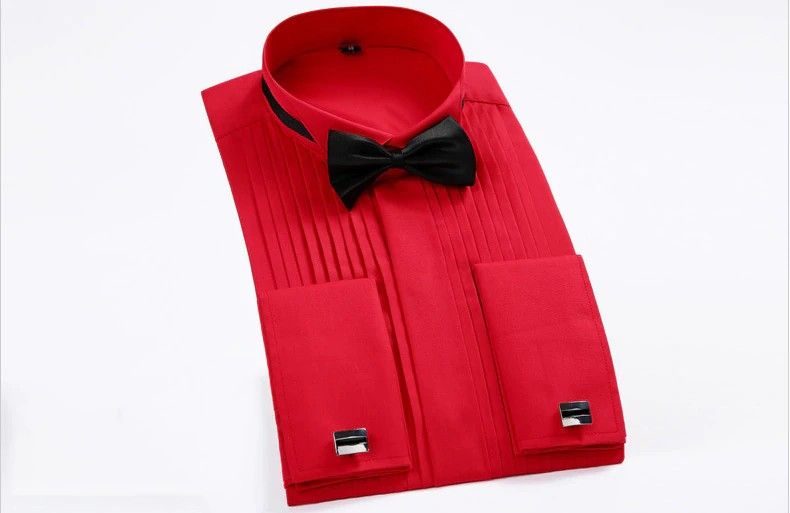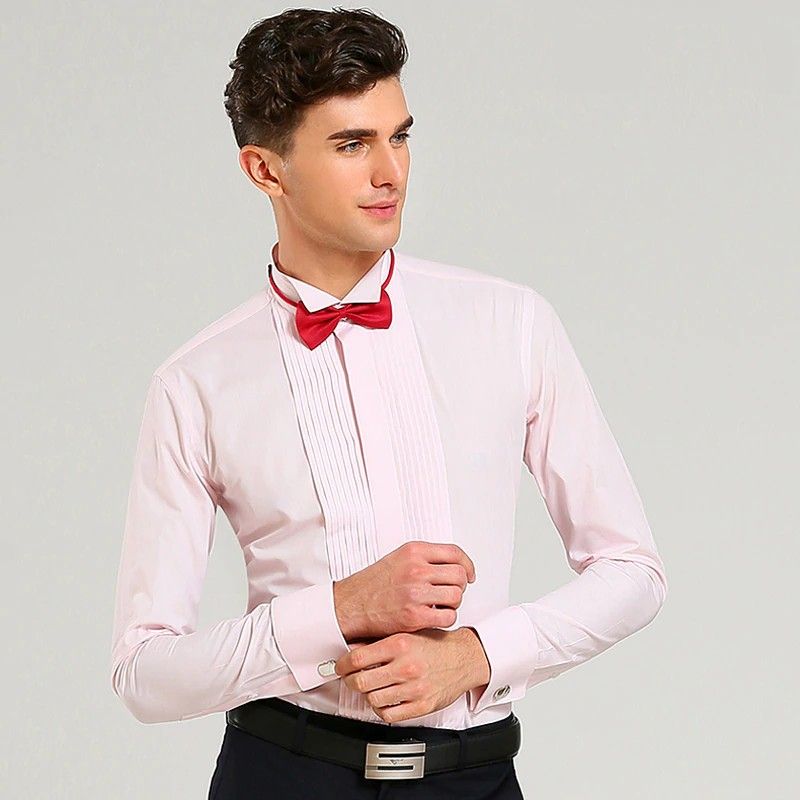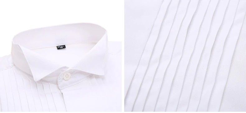 Camisa Smoking Branca Masculina, Camisa Ajustável Com Botões Francês, Manga Comprida, Festa De Casamento De Luxo Masculina 6Xl