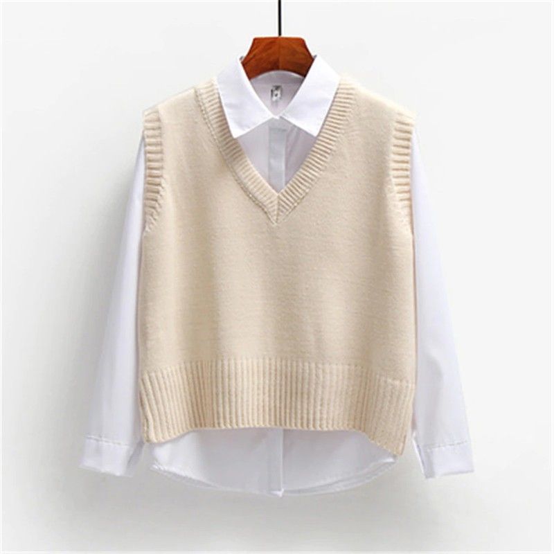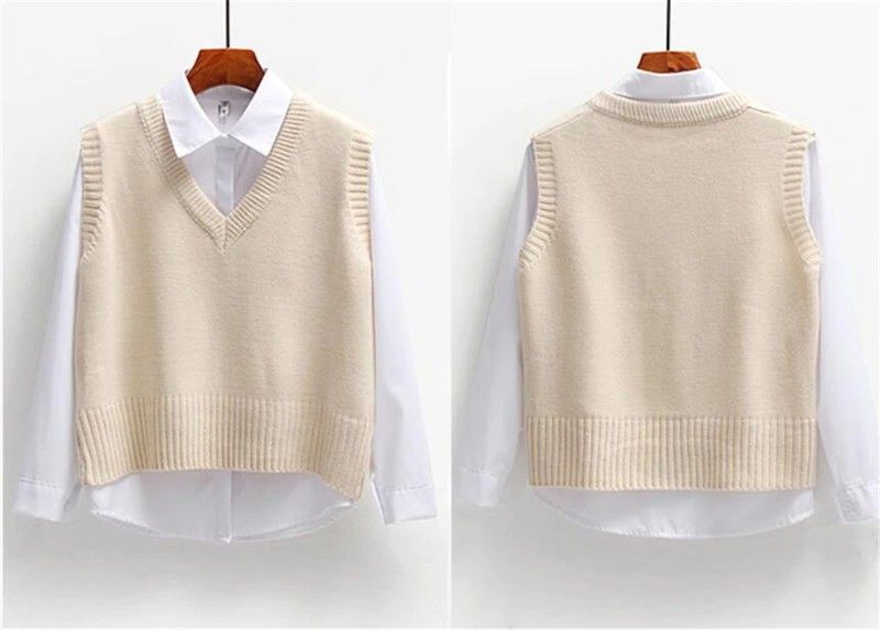 Camisola Feminina Colete Primavera O mais novo Outono Feminino Curto Solto Camisola De Malha Sem Mangas Senhoras Com Decote Em V Pulôver Tops Outerwear Feminino